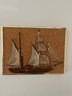 Vintage String Art Sailboat On Corkboard With A Gold-toned Frame