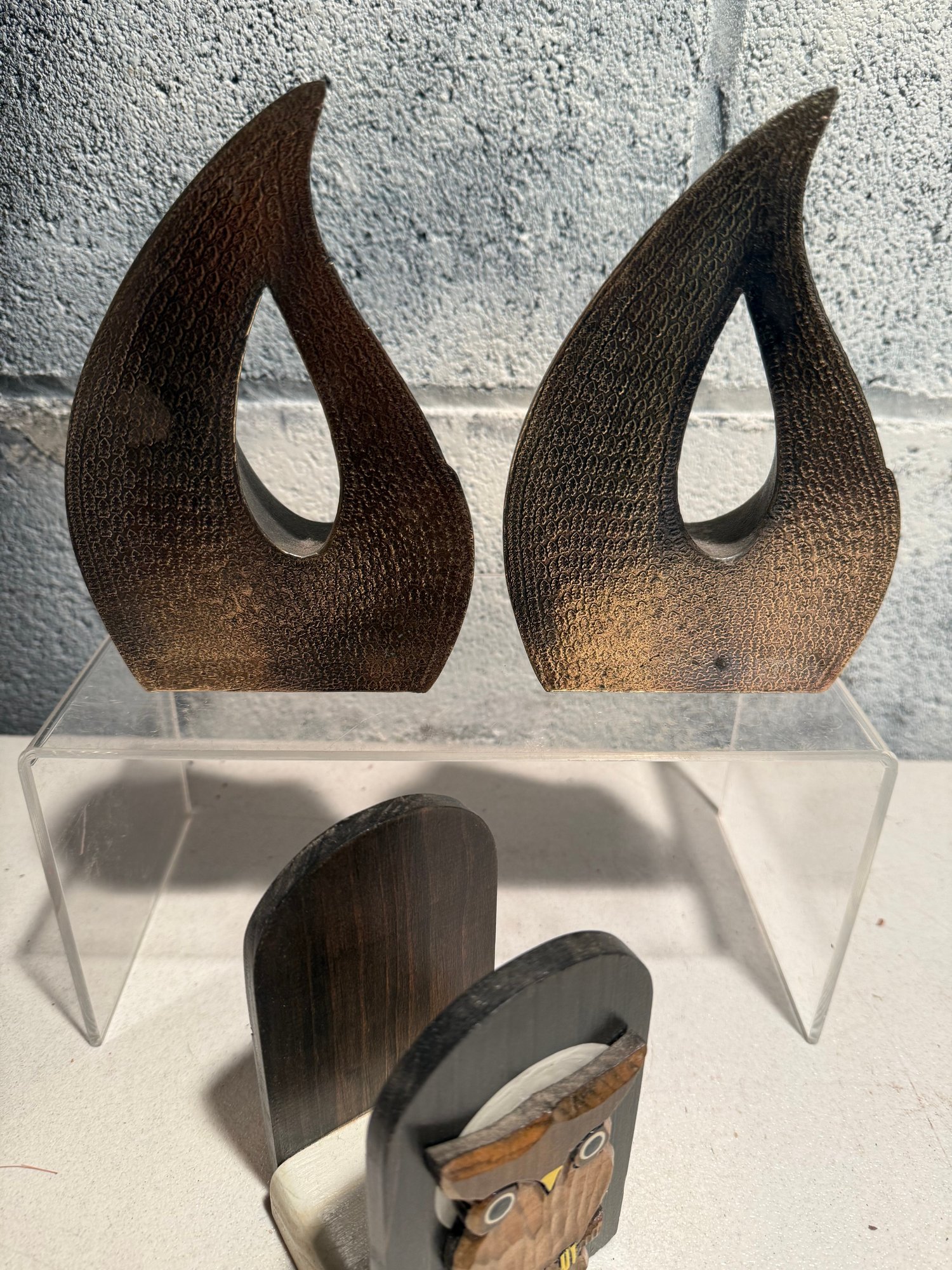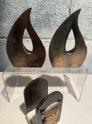Vintage Teardrop Bookends The Flame By Ben Seibel For Jenfredware In The 1950s & Owl Bookend