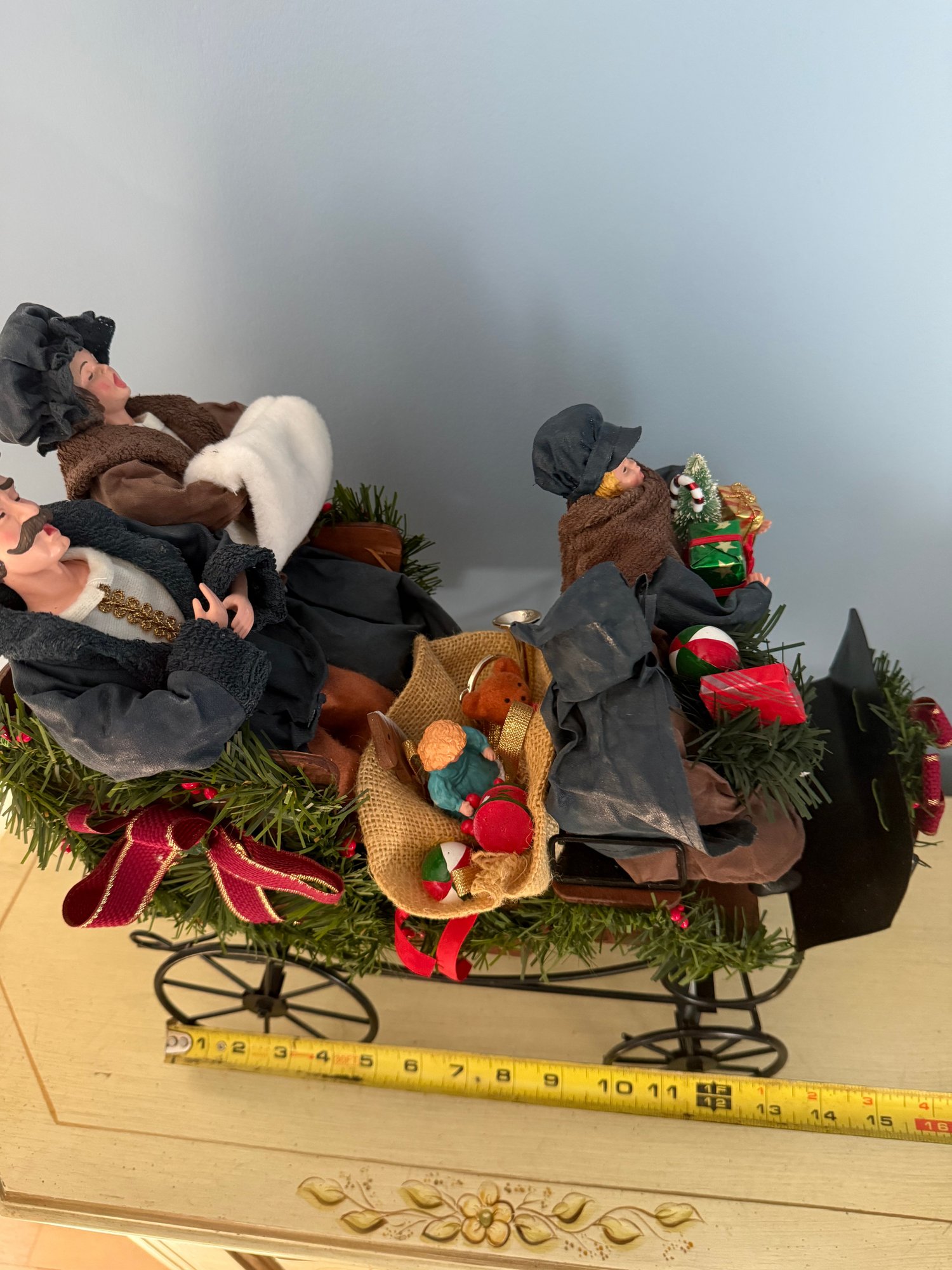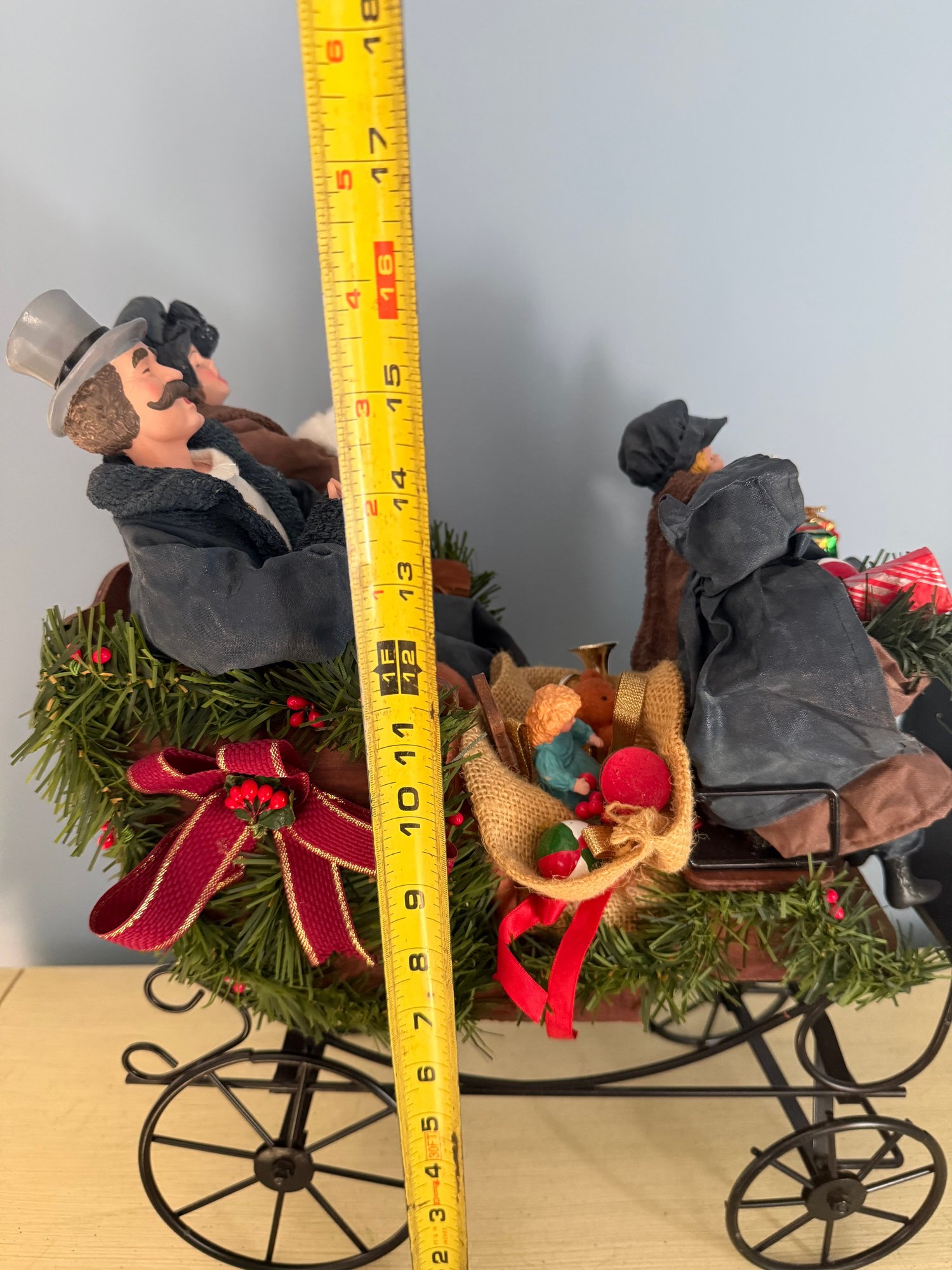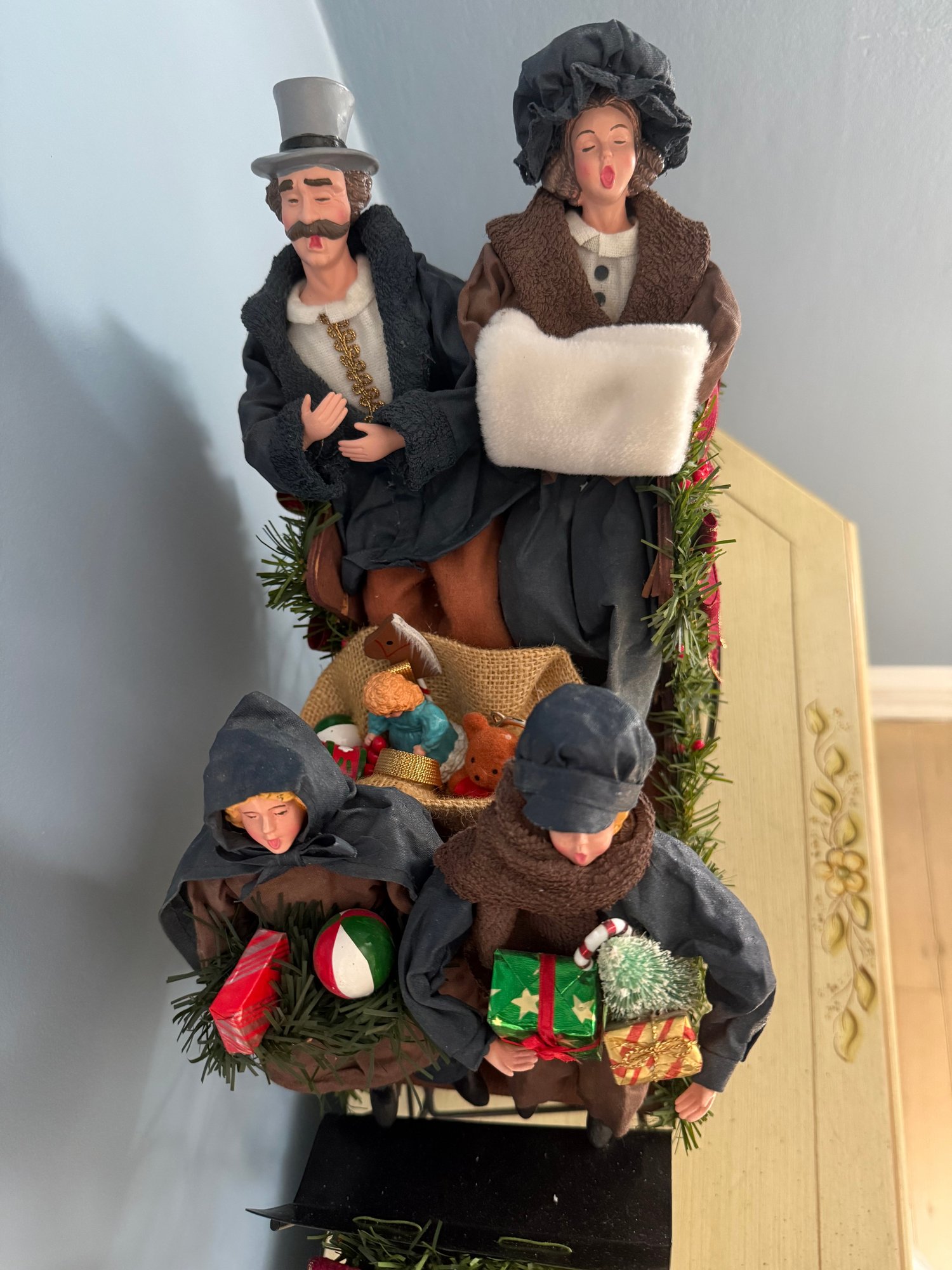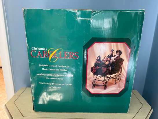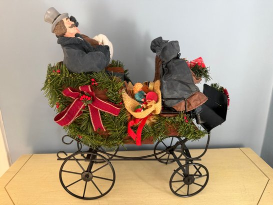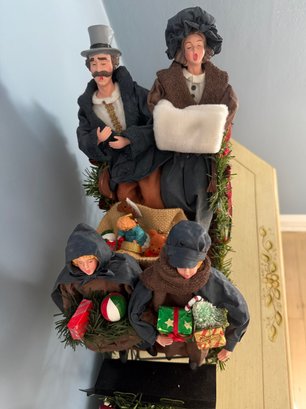 Vintage Traditions Fabric Mache Caroling Family In Carriage Centerpiece Display
