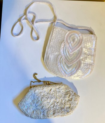 Vintage White Beaded And Sequined Handbags