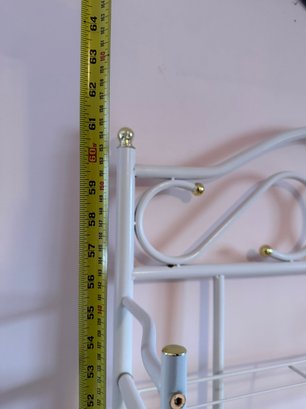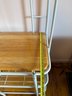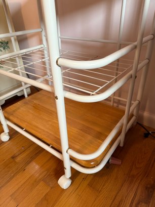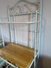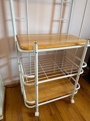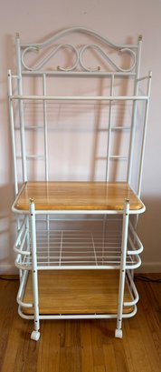 Vintage White Metal Baker's Rack With Wooden Shelves And Casters