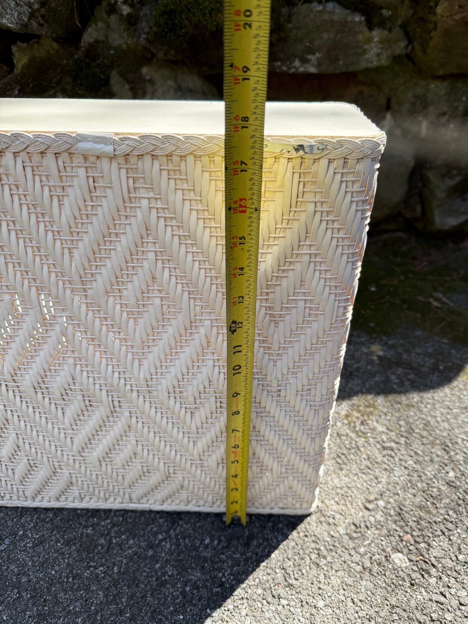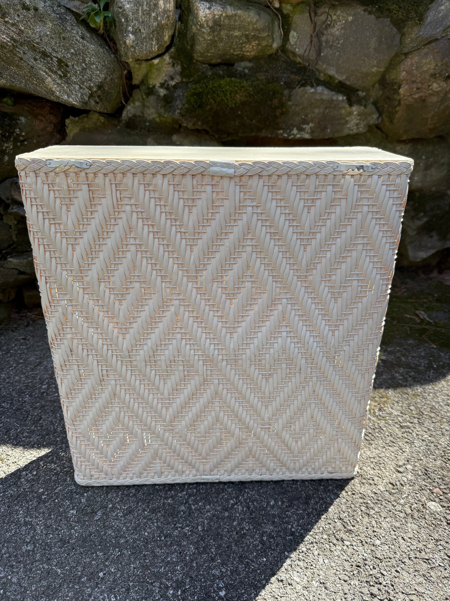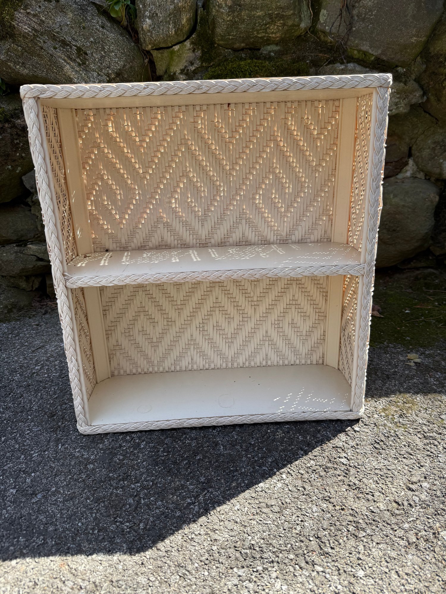 Vintage Woven Wicker Shelf With Braided Trim And Diamond Pattern