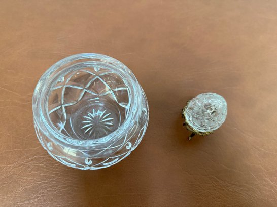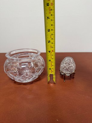 Waterford Nocturne Cut Crystal Rose Bowl & Vintage Faberg Etched Crystal Egg