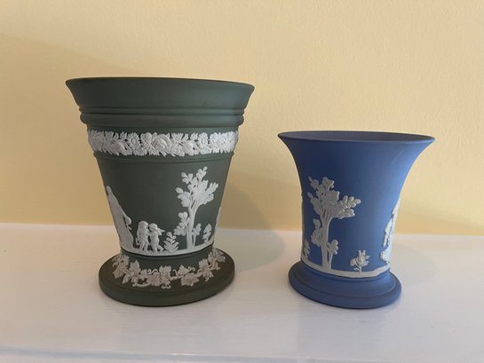 Wedgewood Jasper Ware Vases Green Frog Vase And Blue Bud Vase