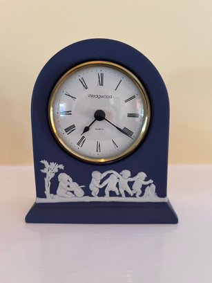 Wedgwood Blue Jasperware Mantel Clock With Dancing Cherub Reliefs