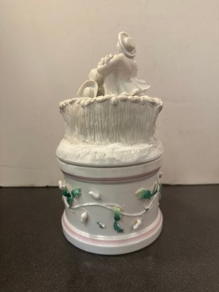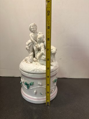 White Porcelain Lidded Box With Rococo-style Figural And Floral Decoration