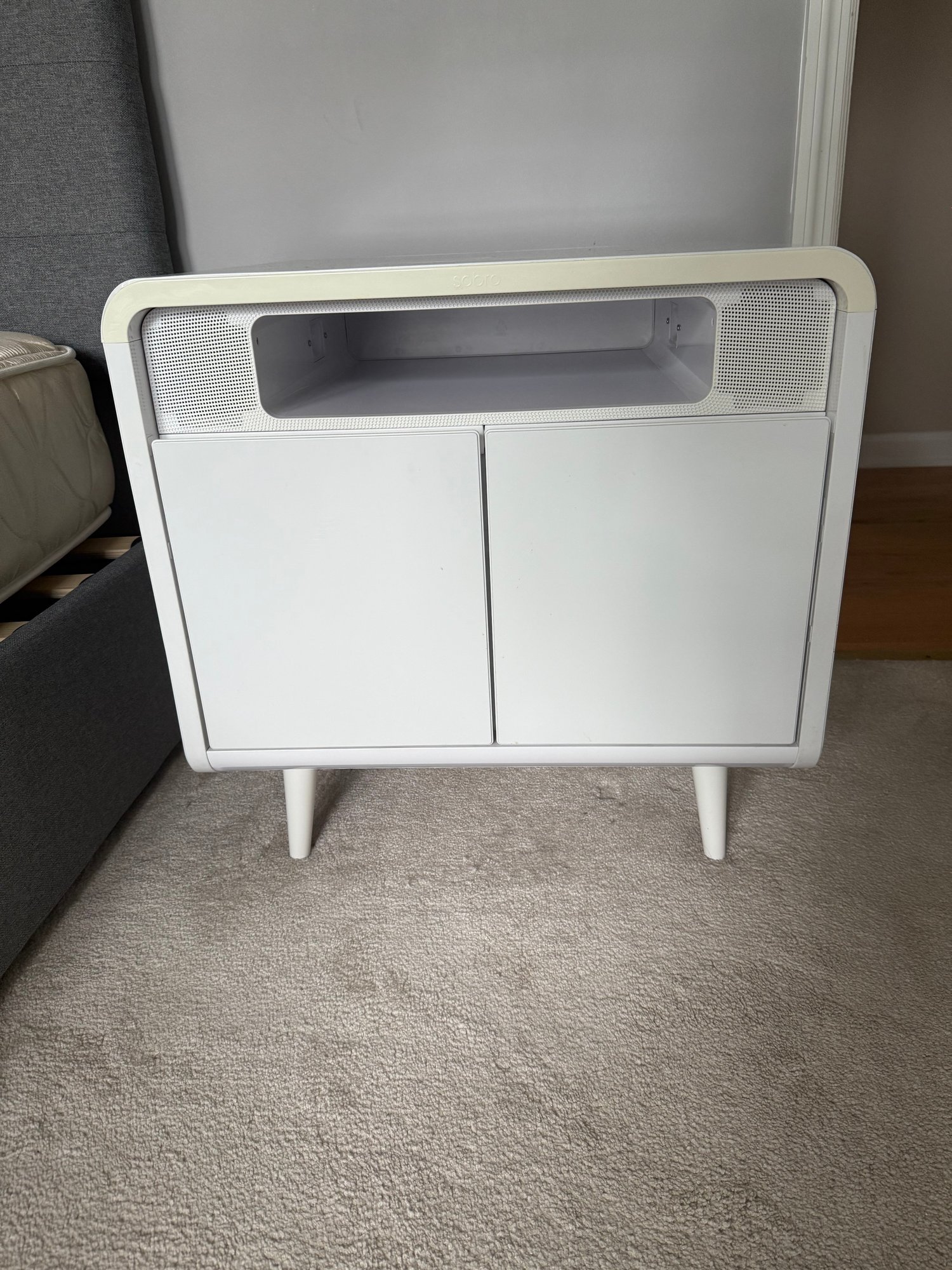 White Sobro Smart Side Table With Integrated Speakers And Refrigerator