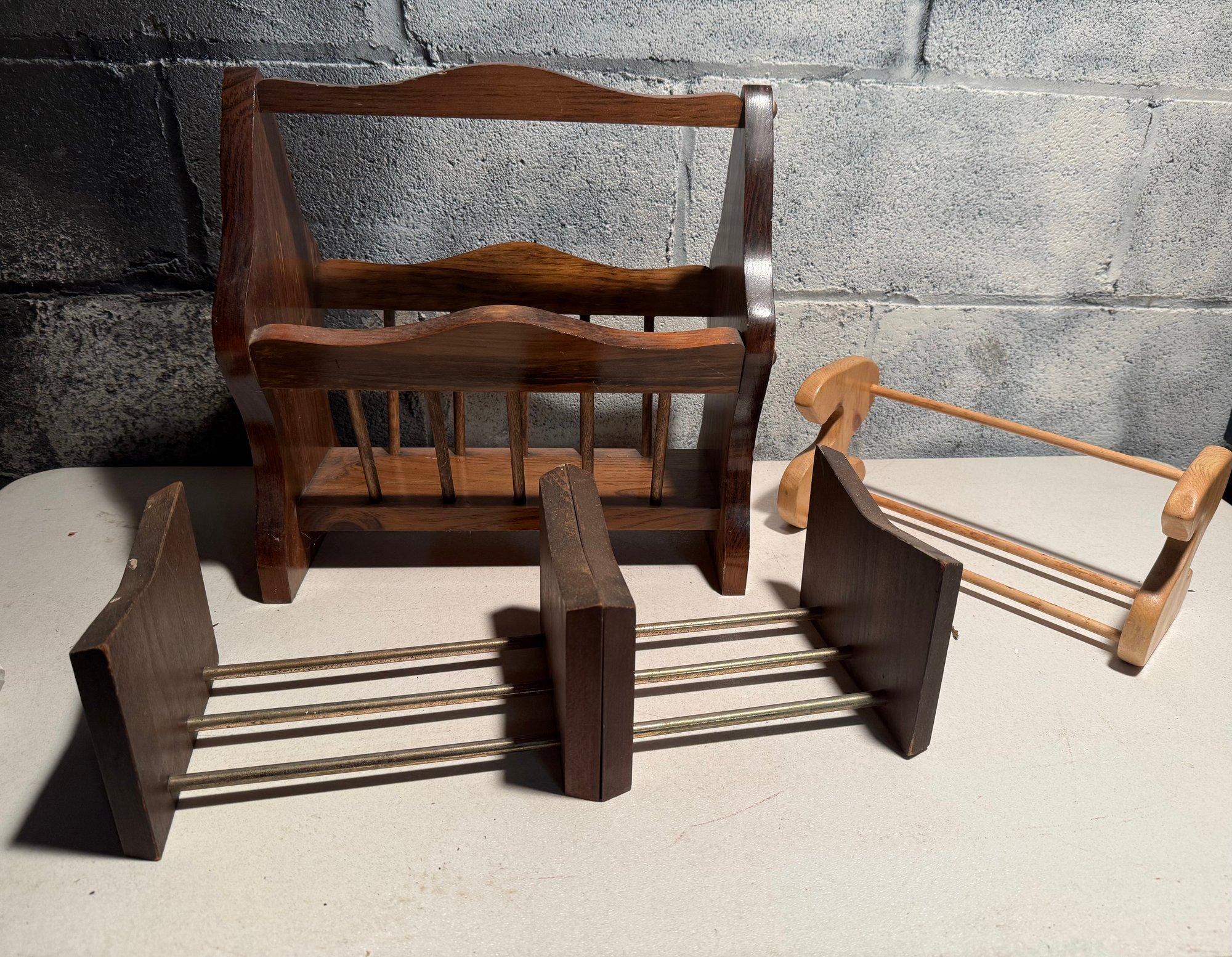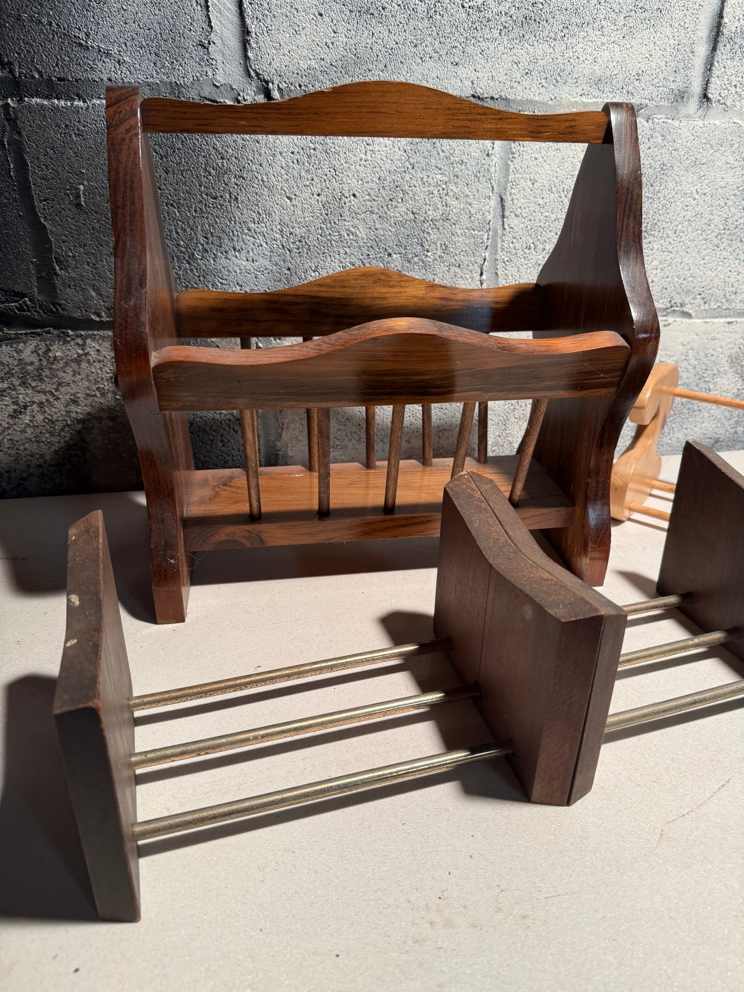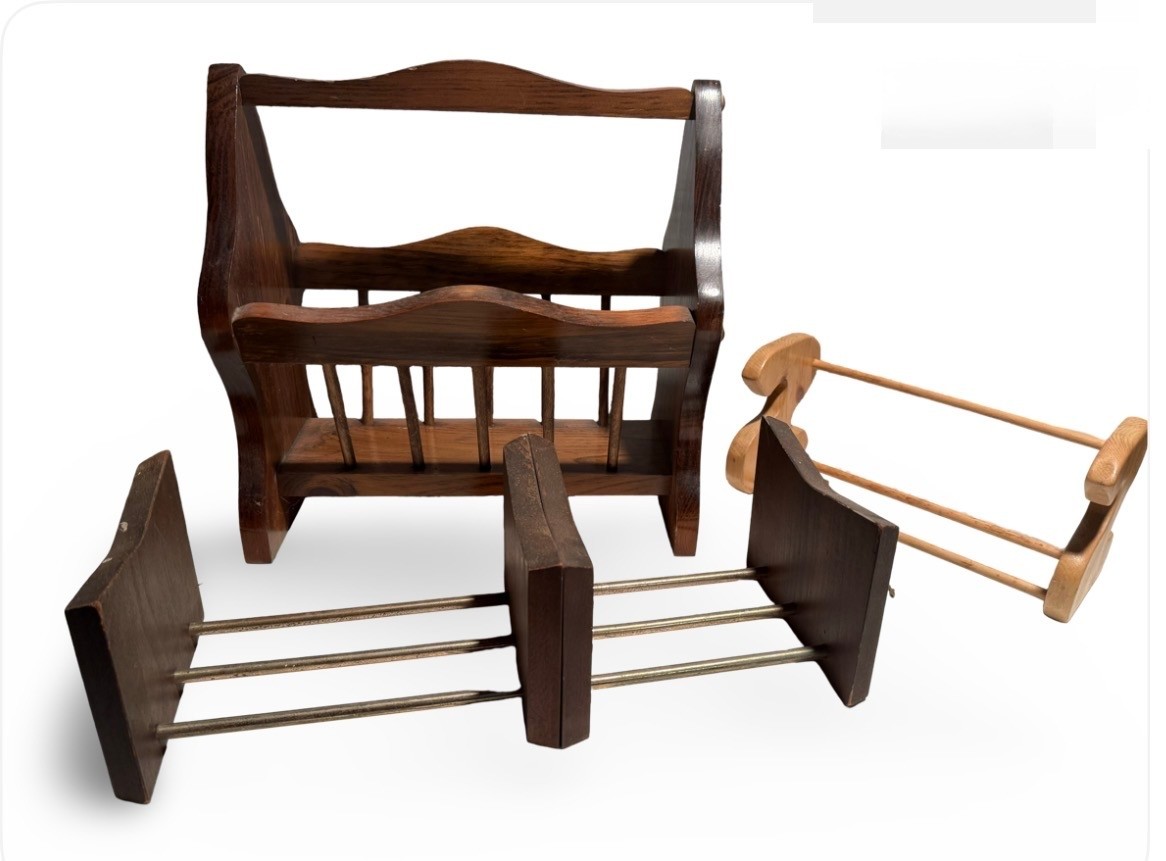 Wood Magazine Rack, And 2 Tabletop Book Rack