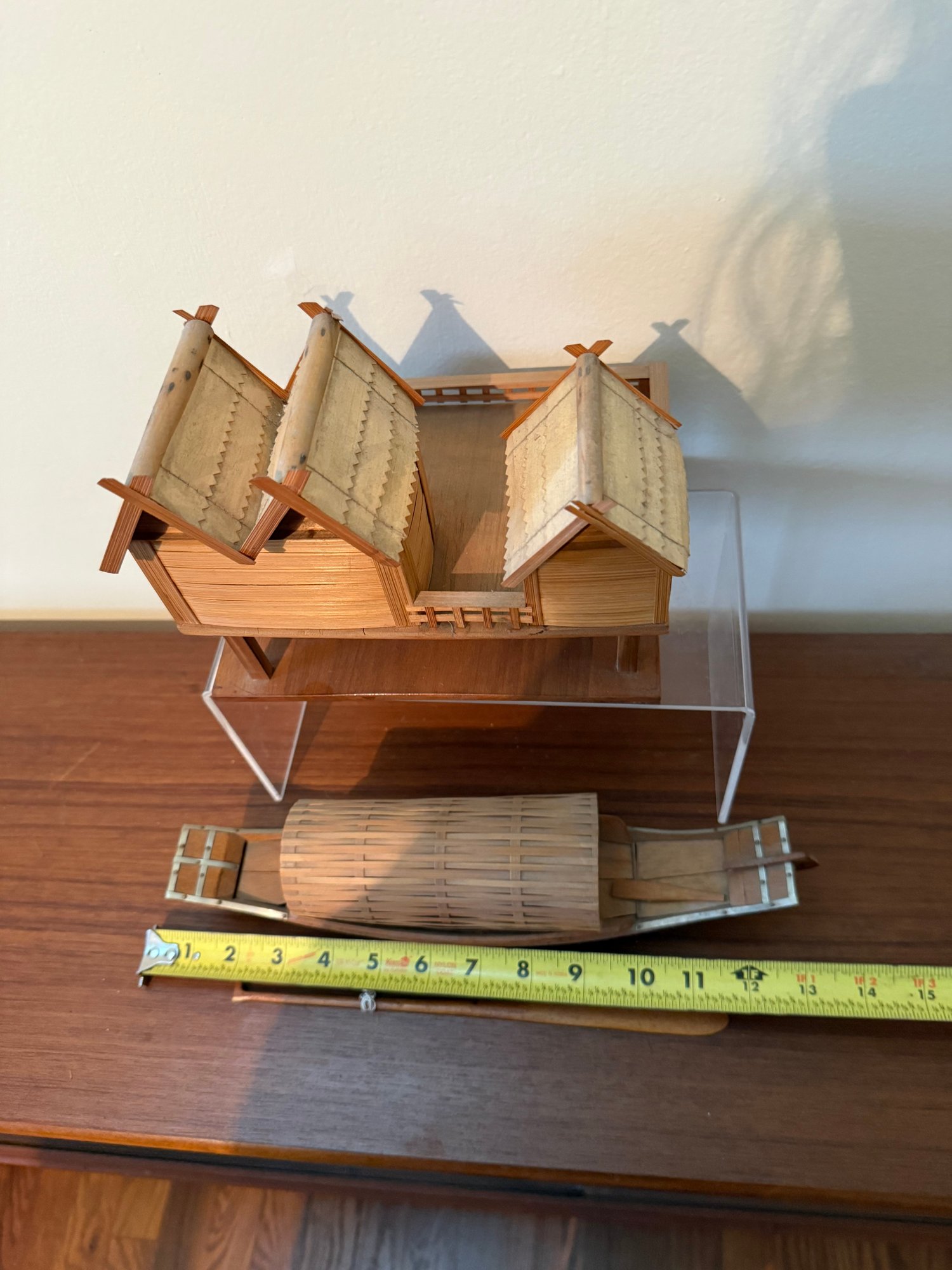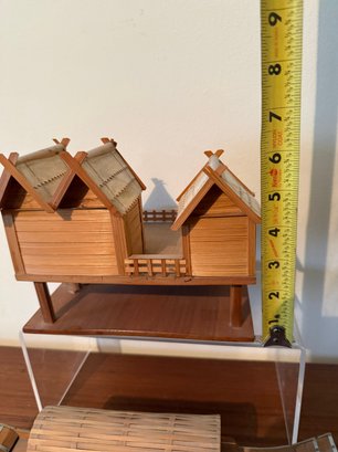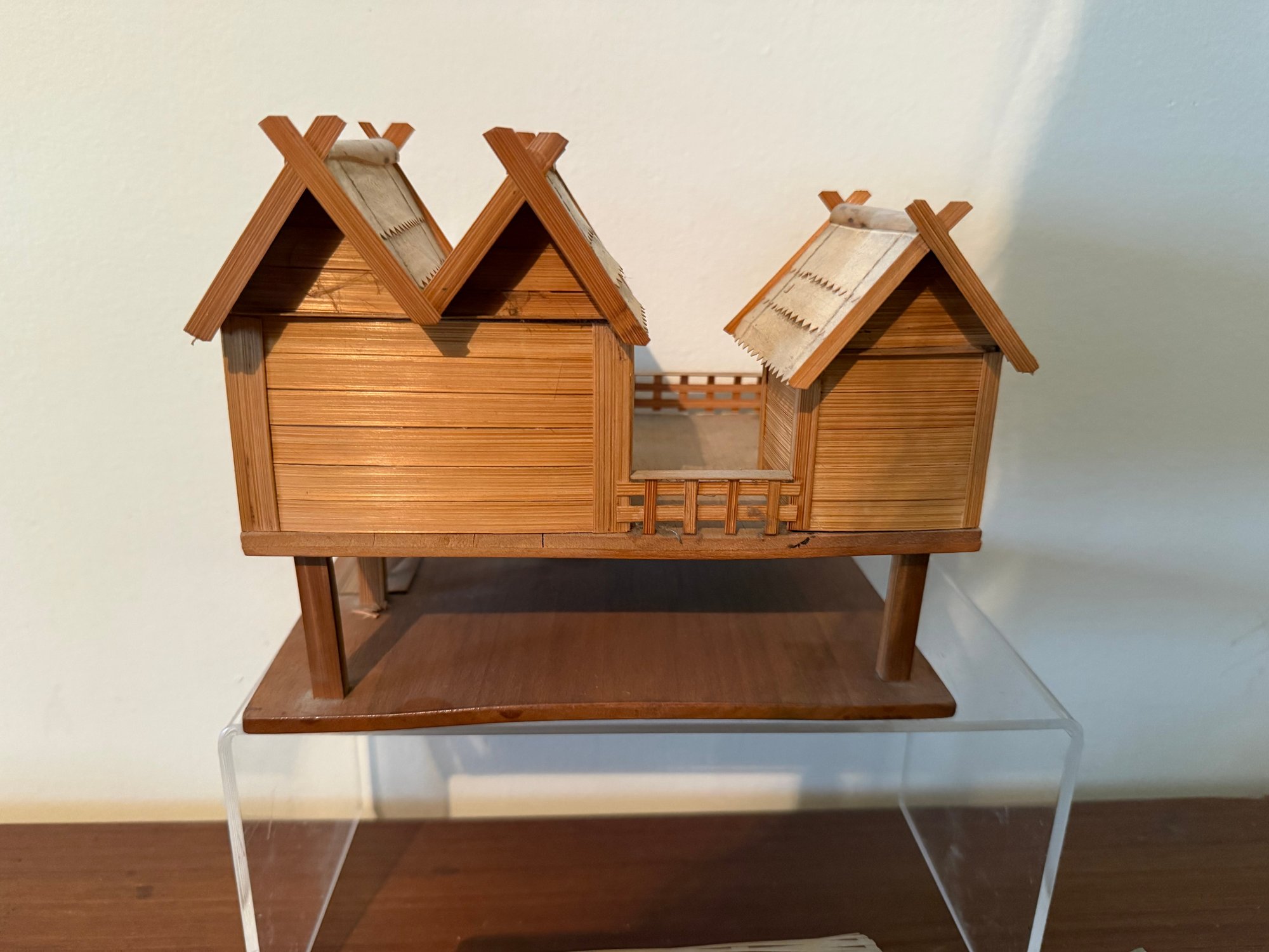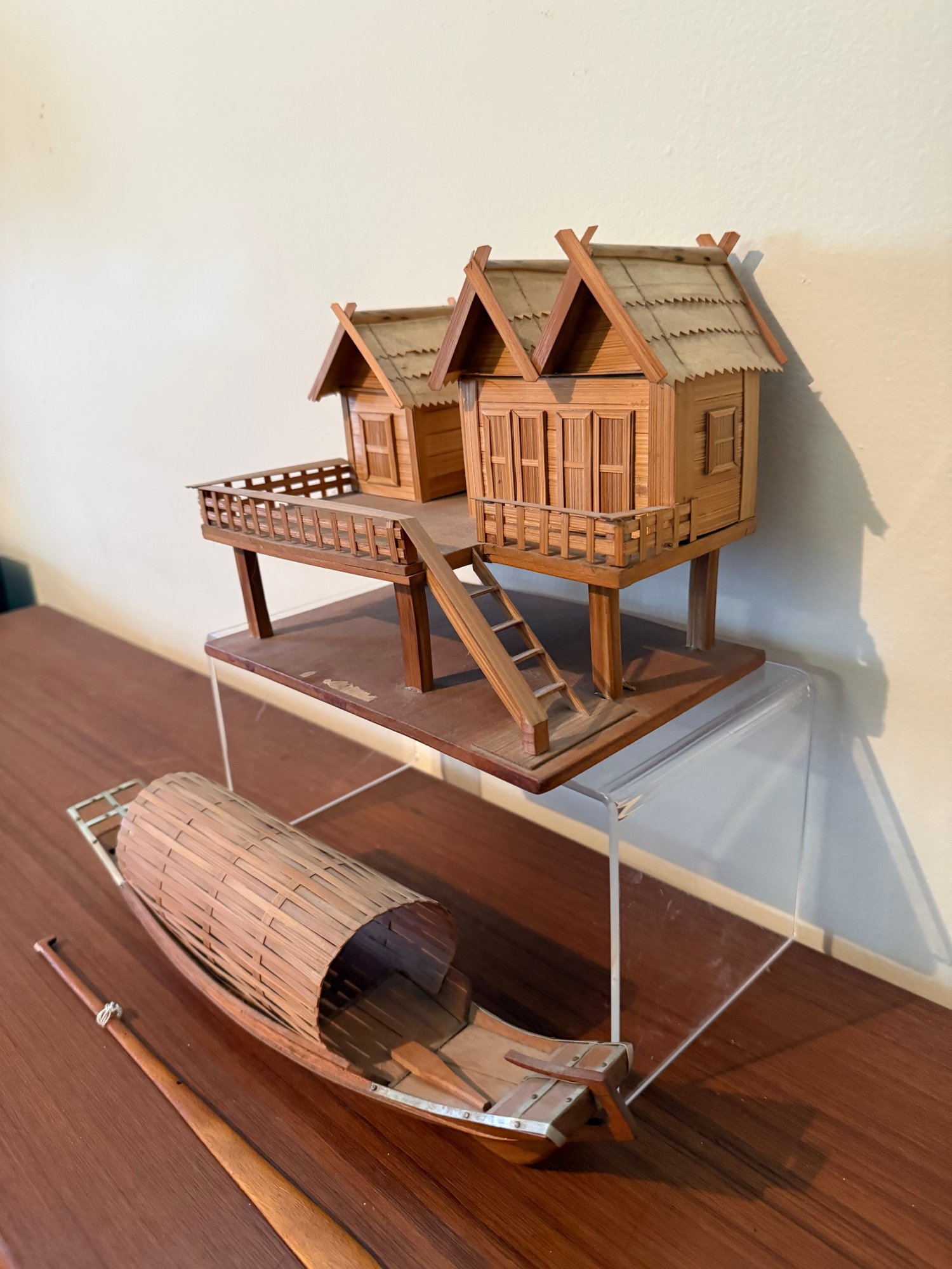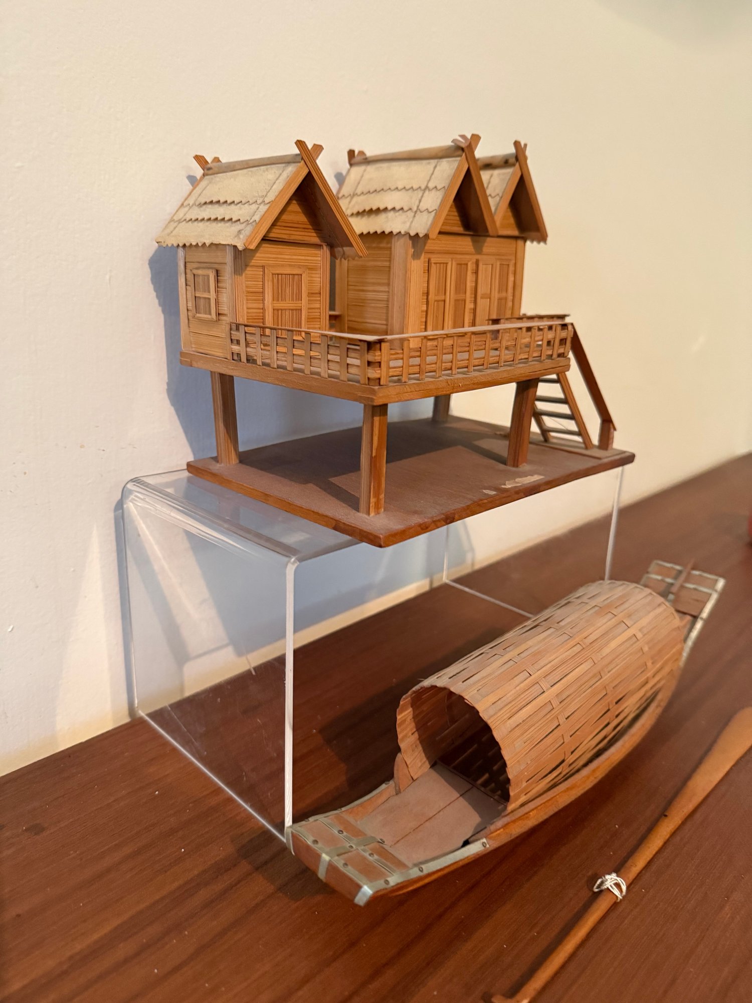Wooden Model Of A Thai Stilt House And Longtail Boat With Oar