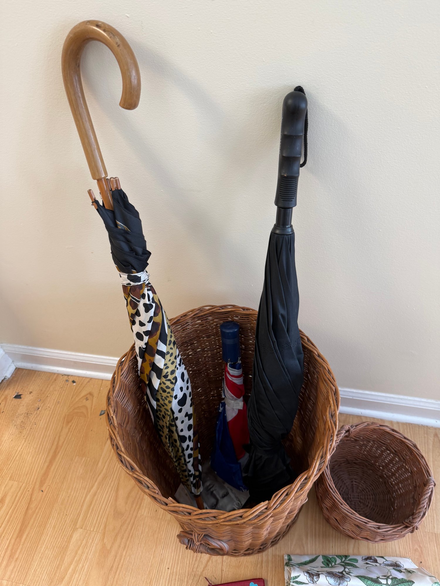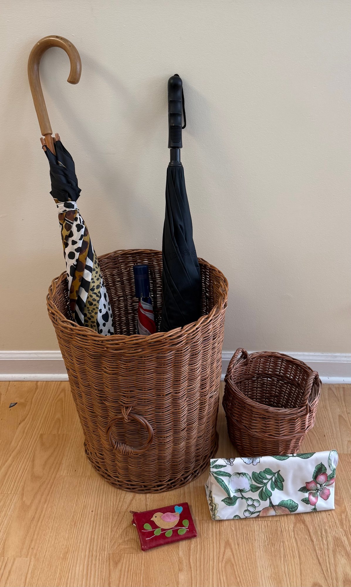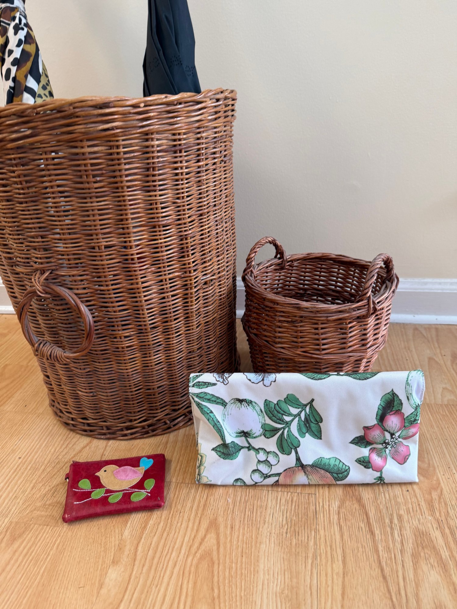 Woven Baskets, Umbrellas, Wallet And Makeup Bag