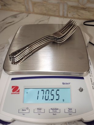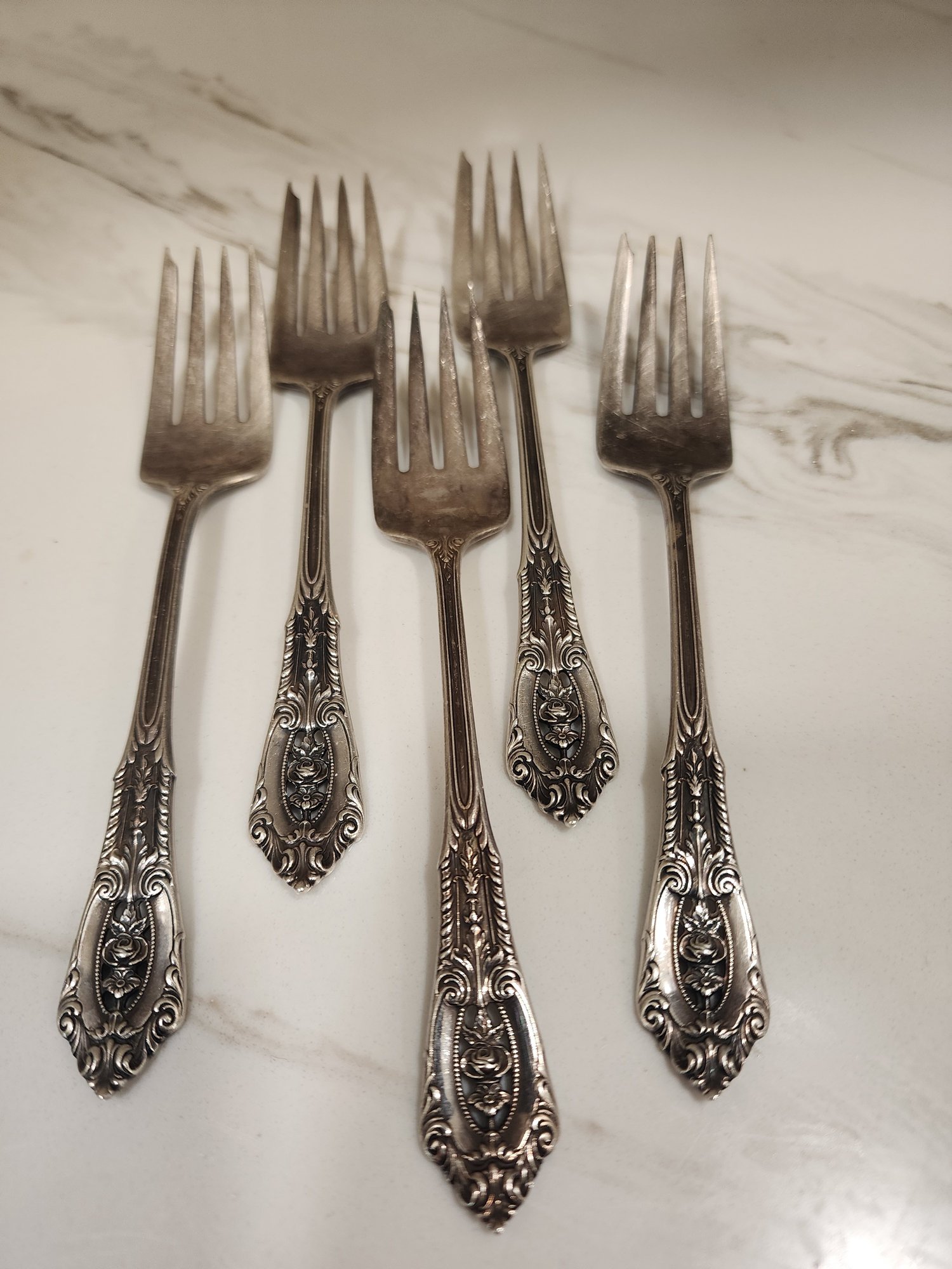 #1 STERLING SILVER WALLACE ROSE POINT SET OF 5 SALAD FORKS 170.55 GR