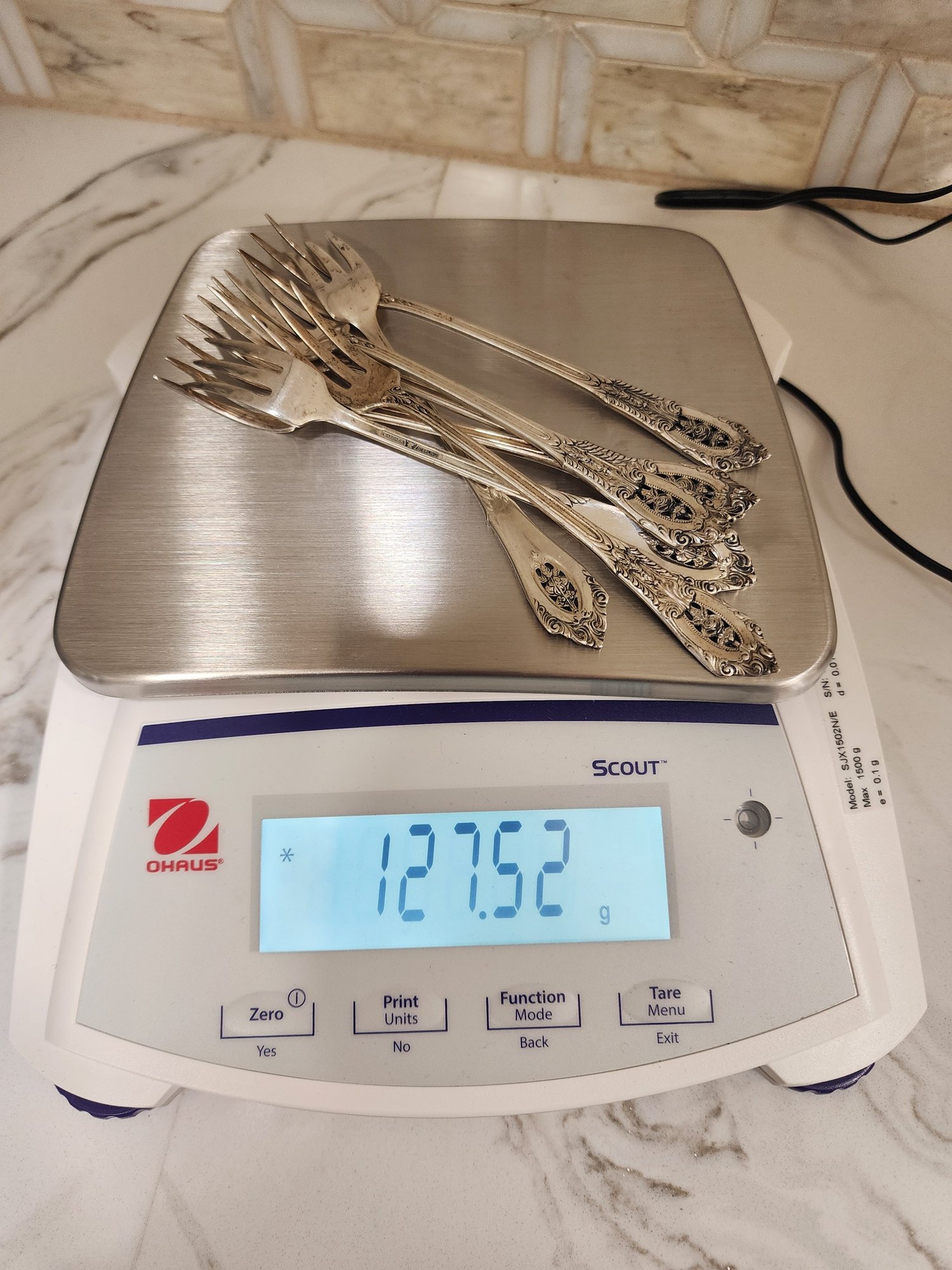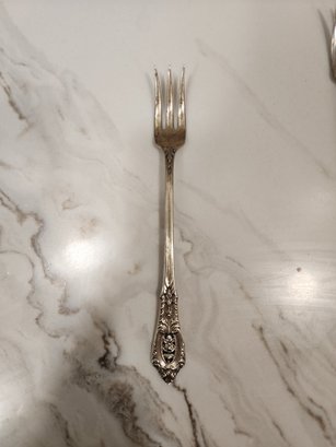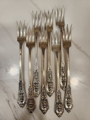 #1 STERLING SILVER WALLACE ROSE POINT SET OF 8 COCKTAIL FORKS 127.5GR.
