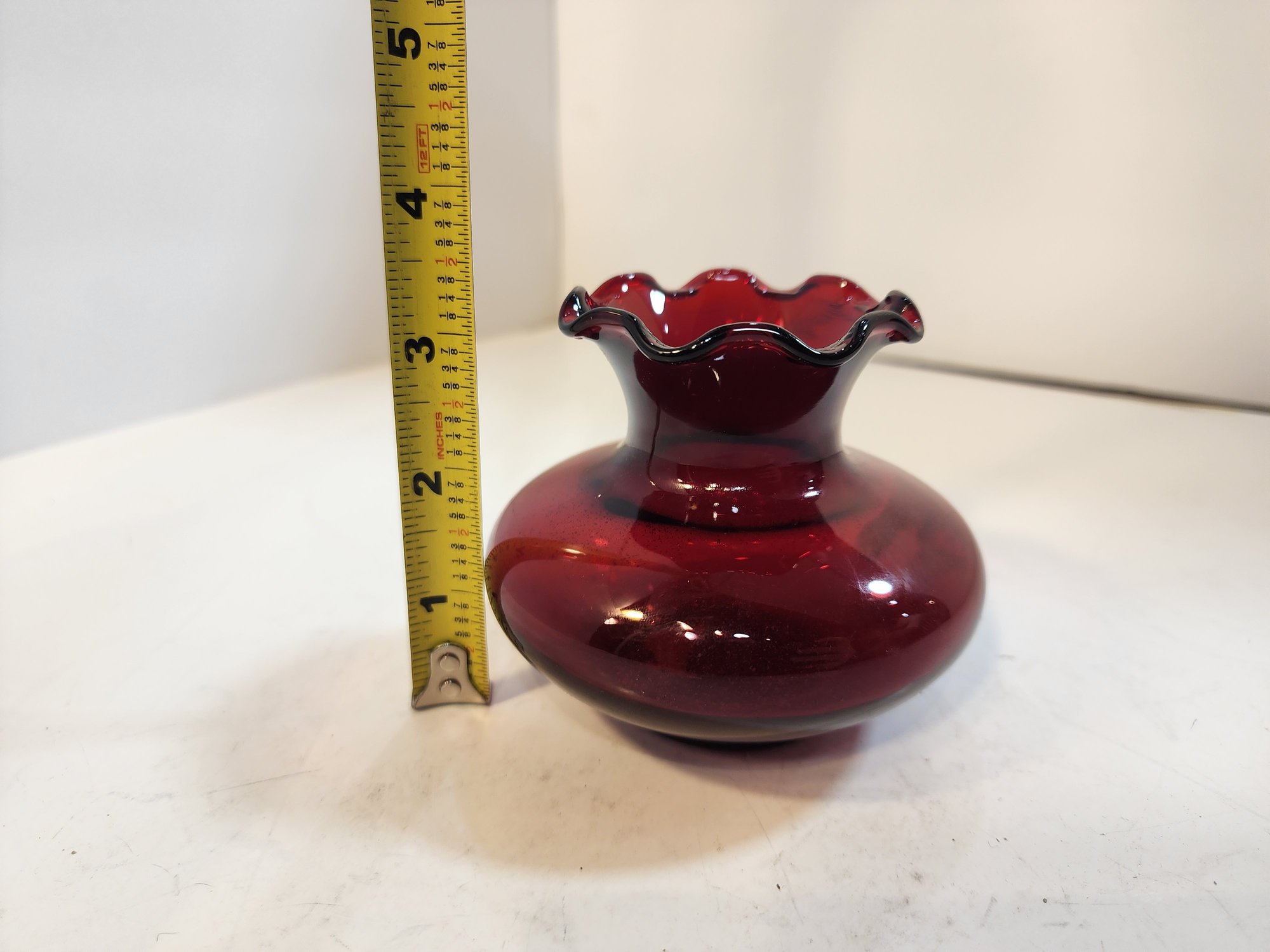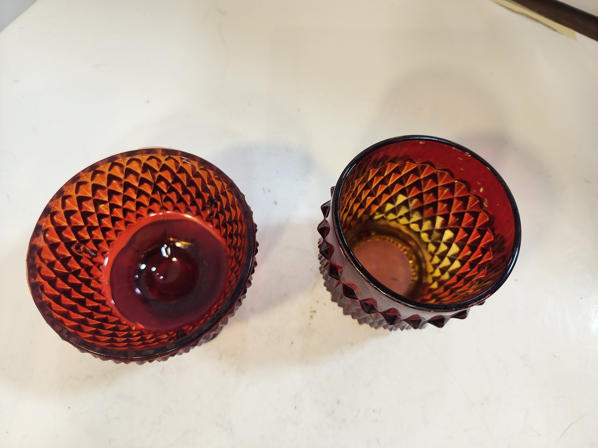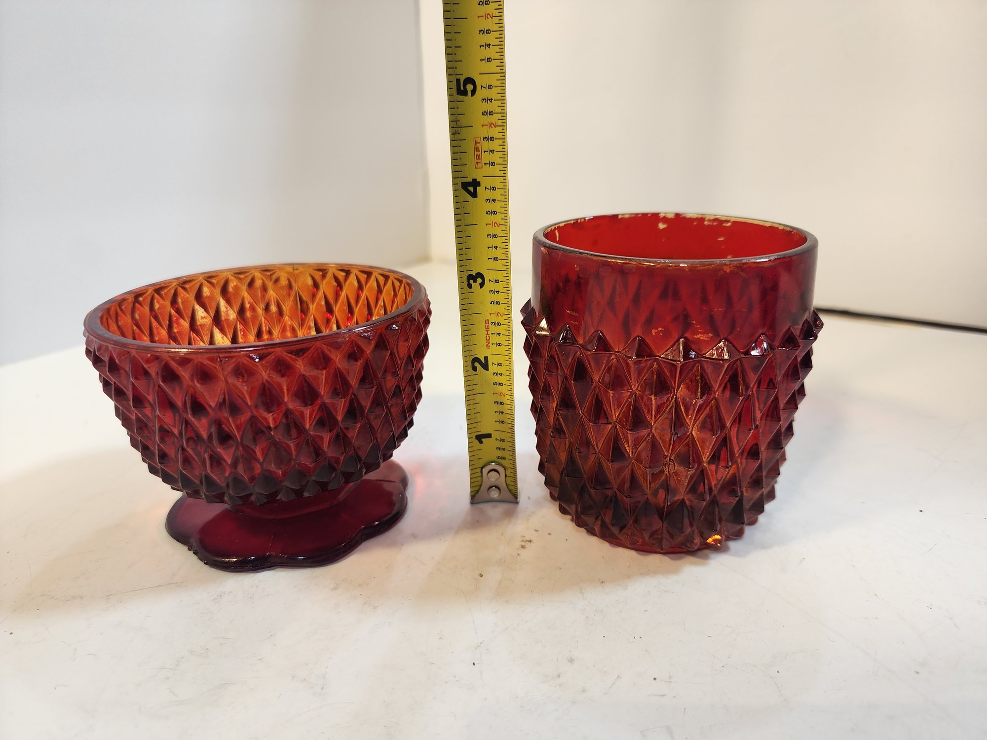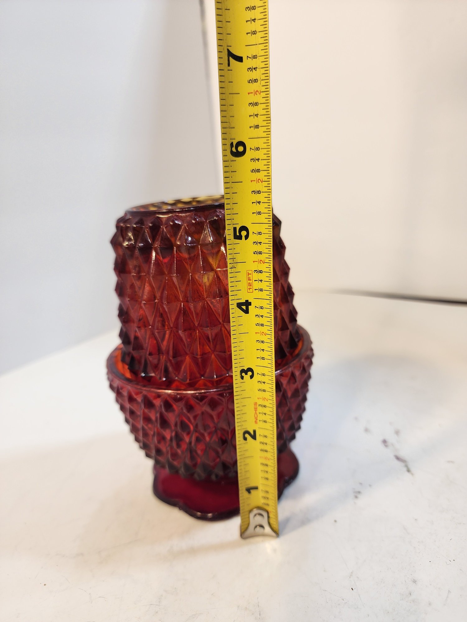 #100 Depression Glass Ruby Red Candle 2 Piece Set And Beautiful Small Red Vase