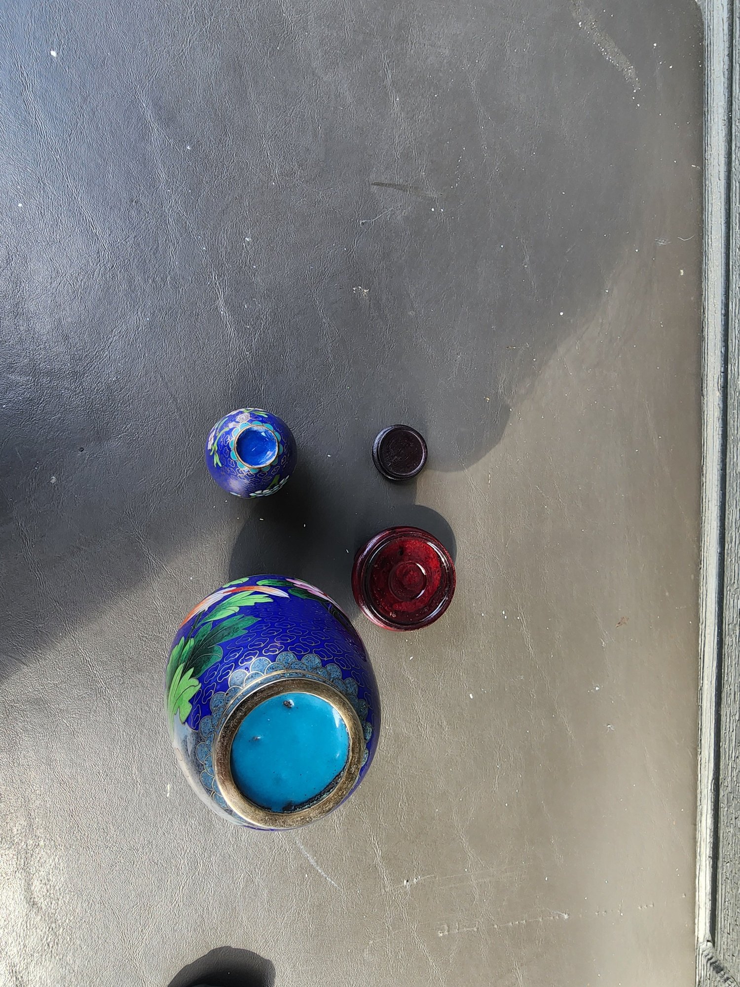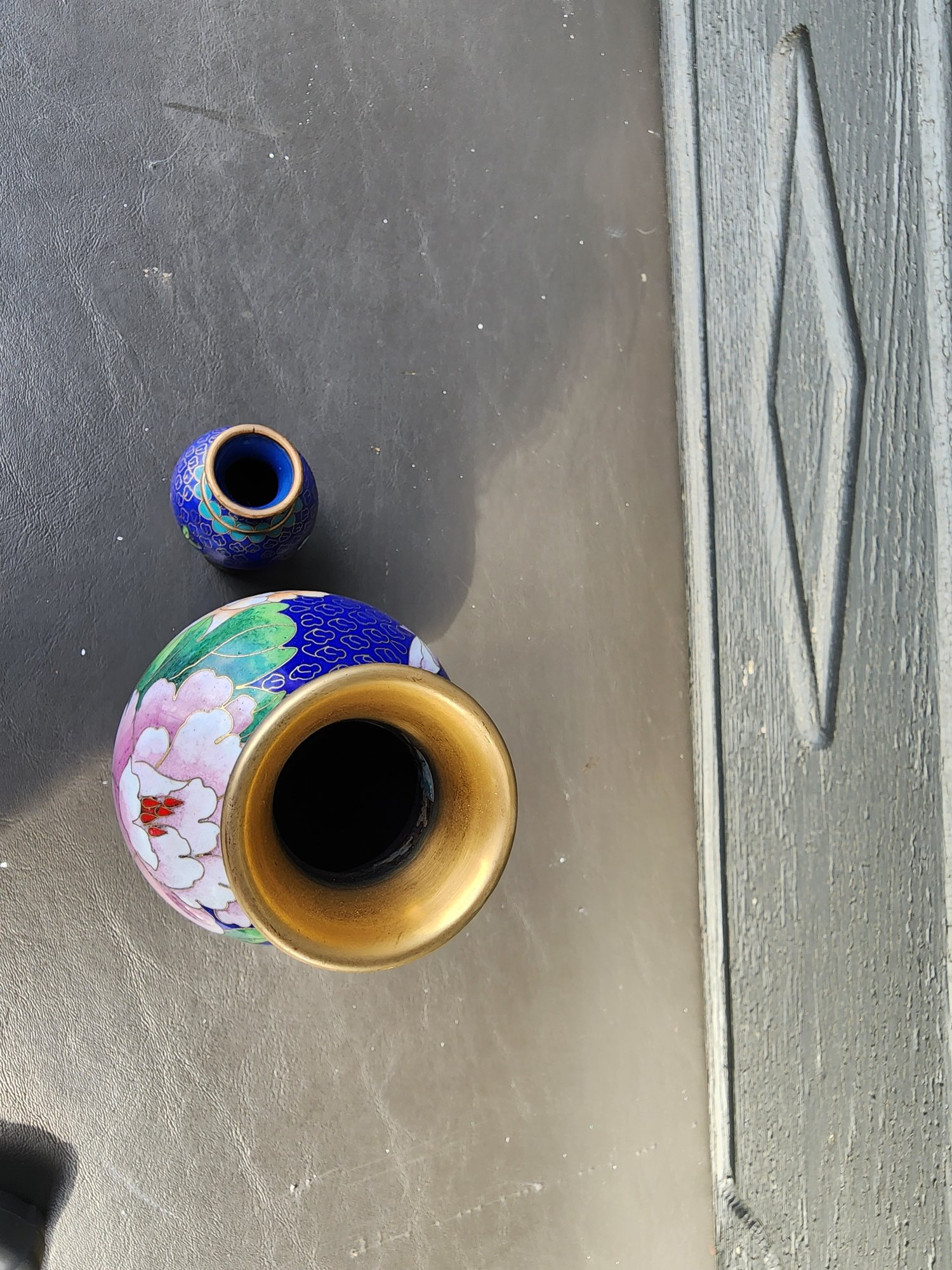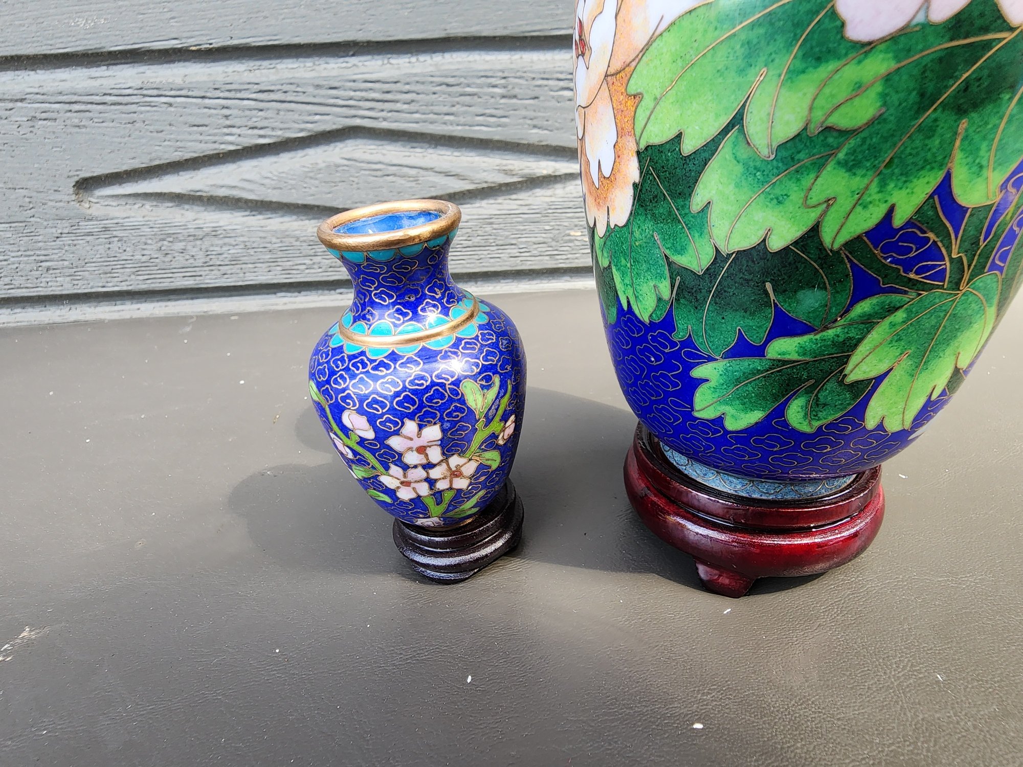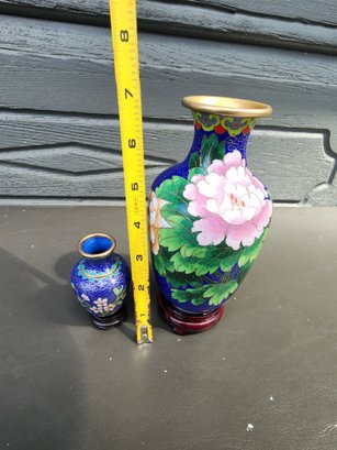 #102 2 Smaller Sized Beautiful Cloisonne Vases With Wood Stands