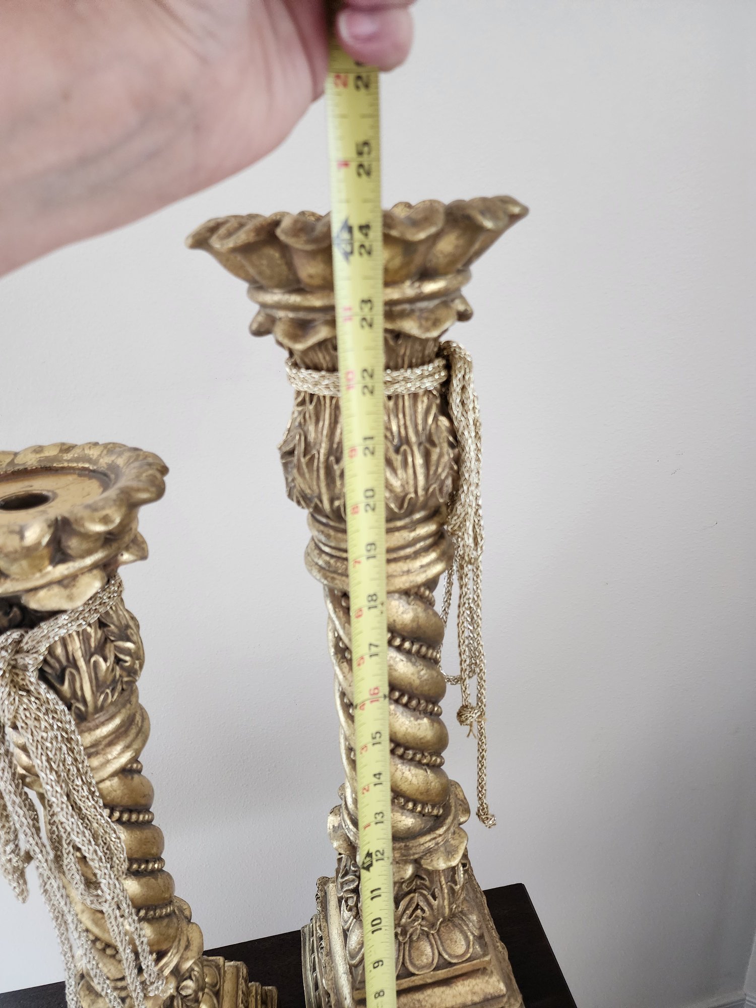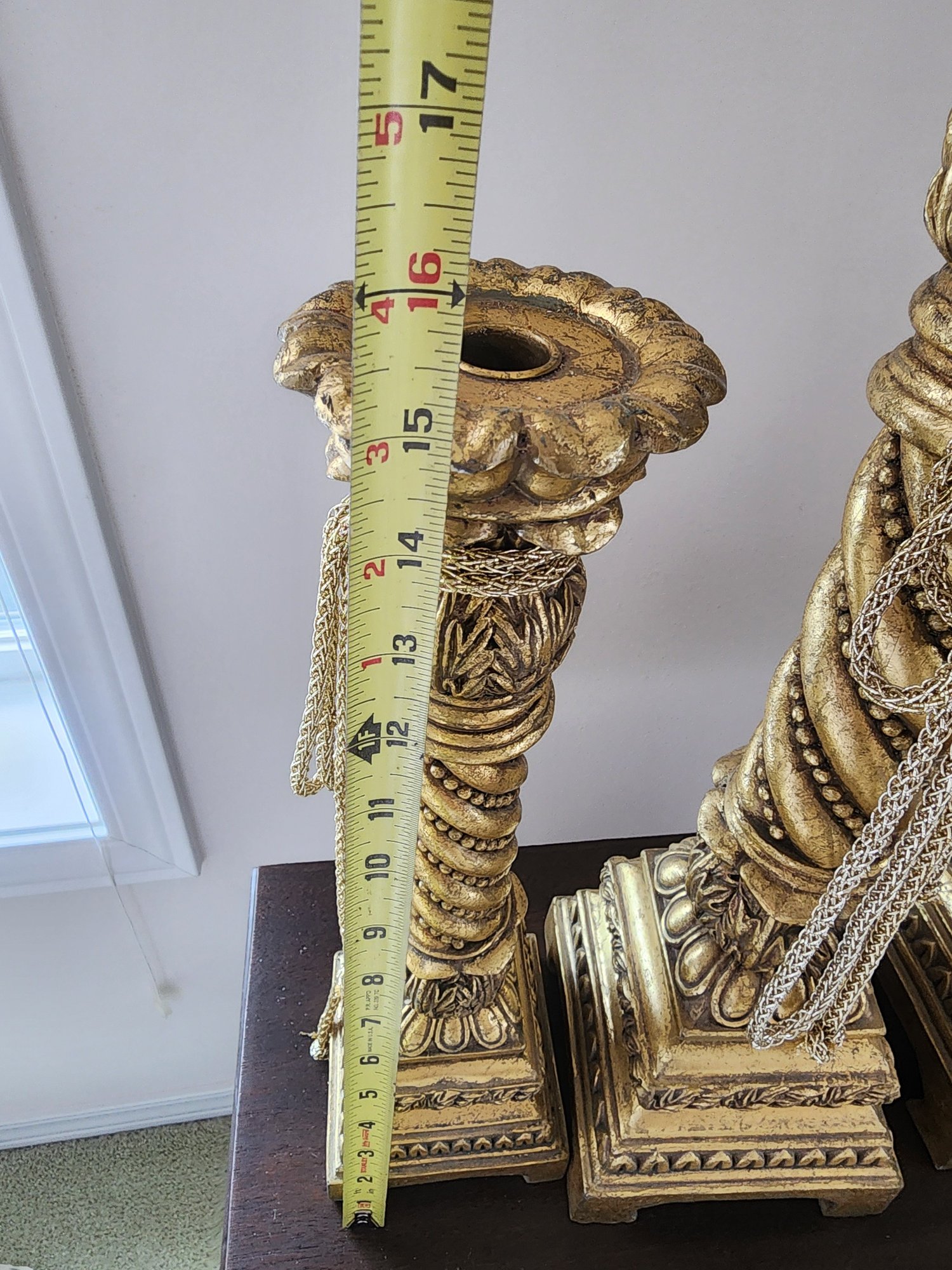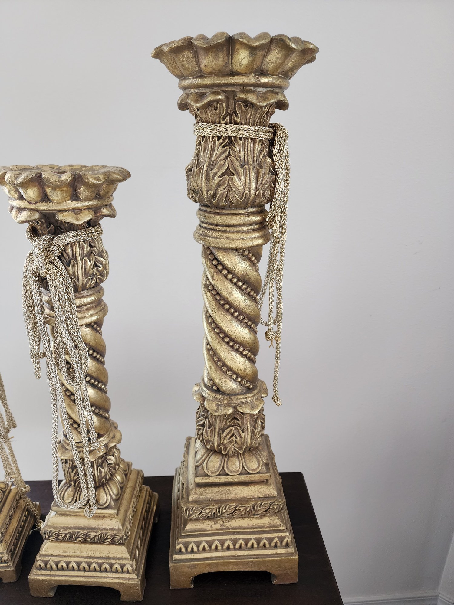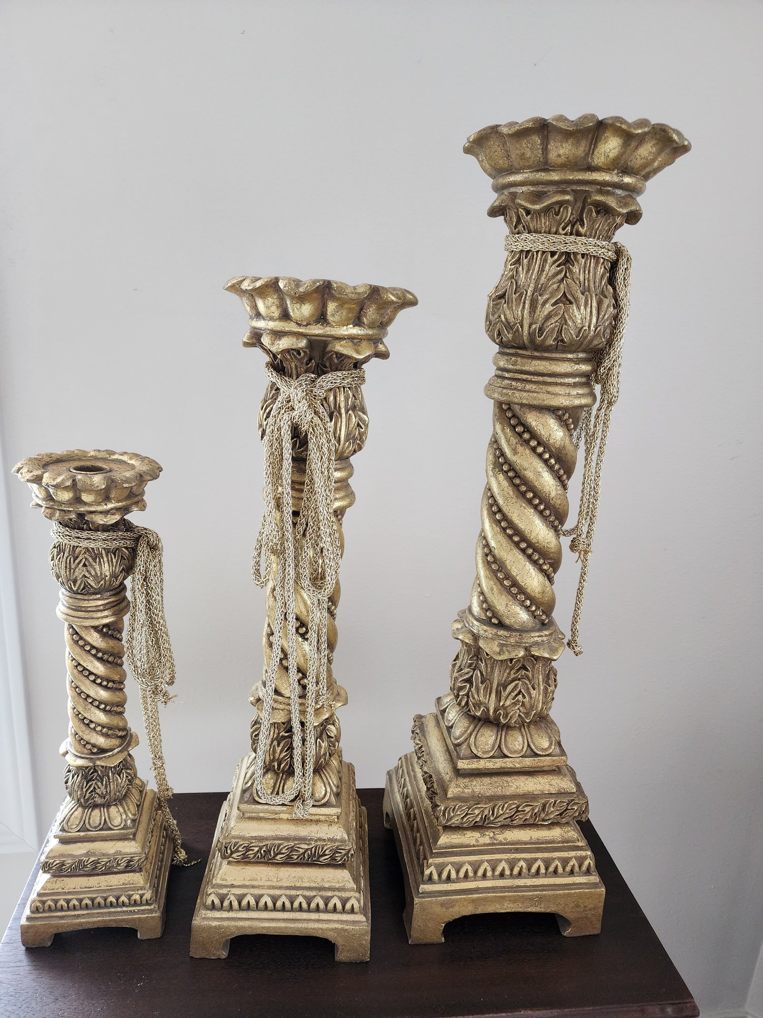 #103 3 Large And Heavy Ornate And Beautiful Gold Candlesticks