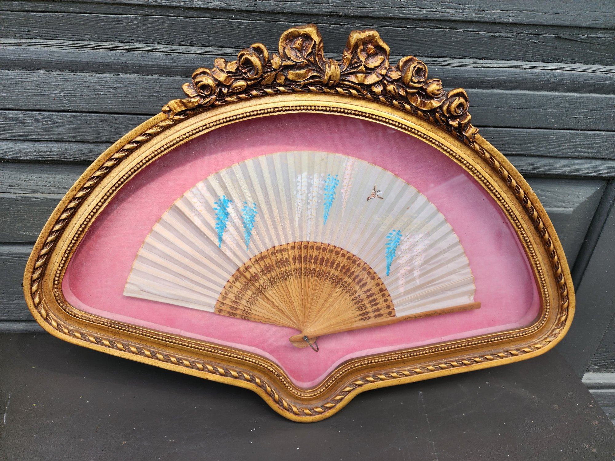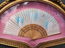 #105 Antique French Fan Beautifully Framed On Pink Velvet