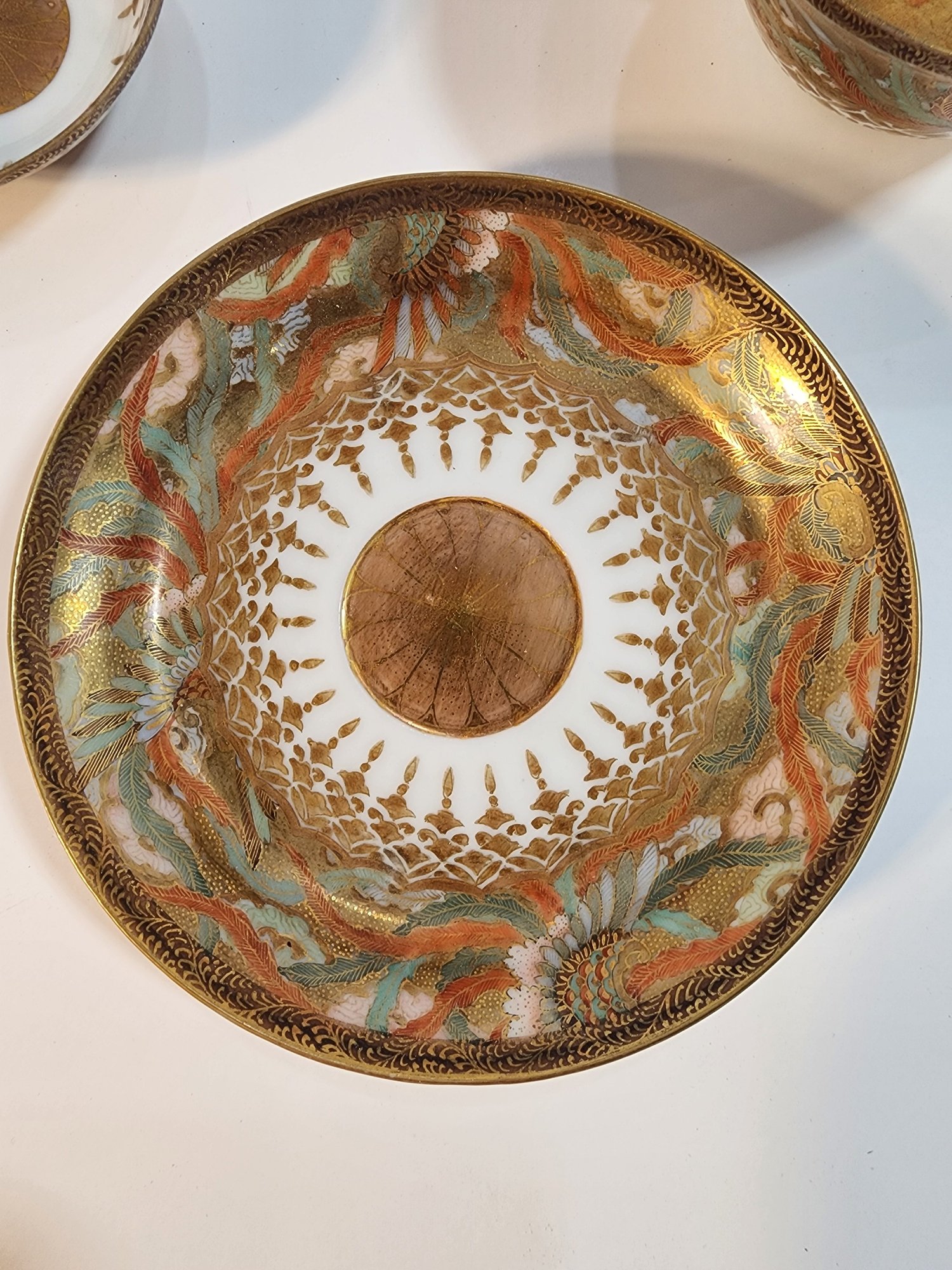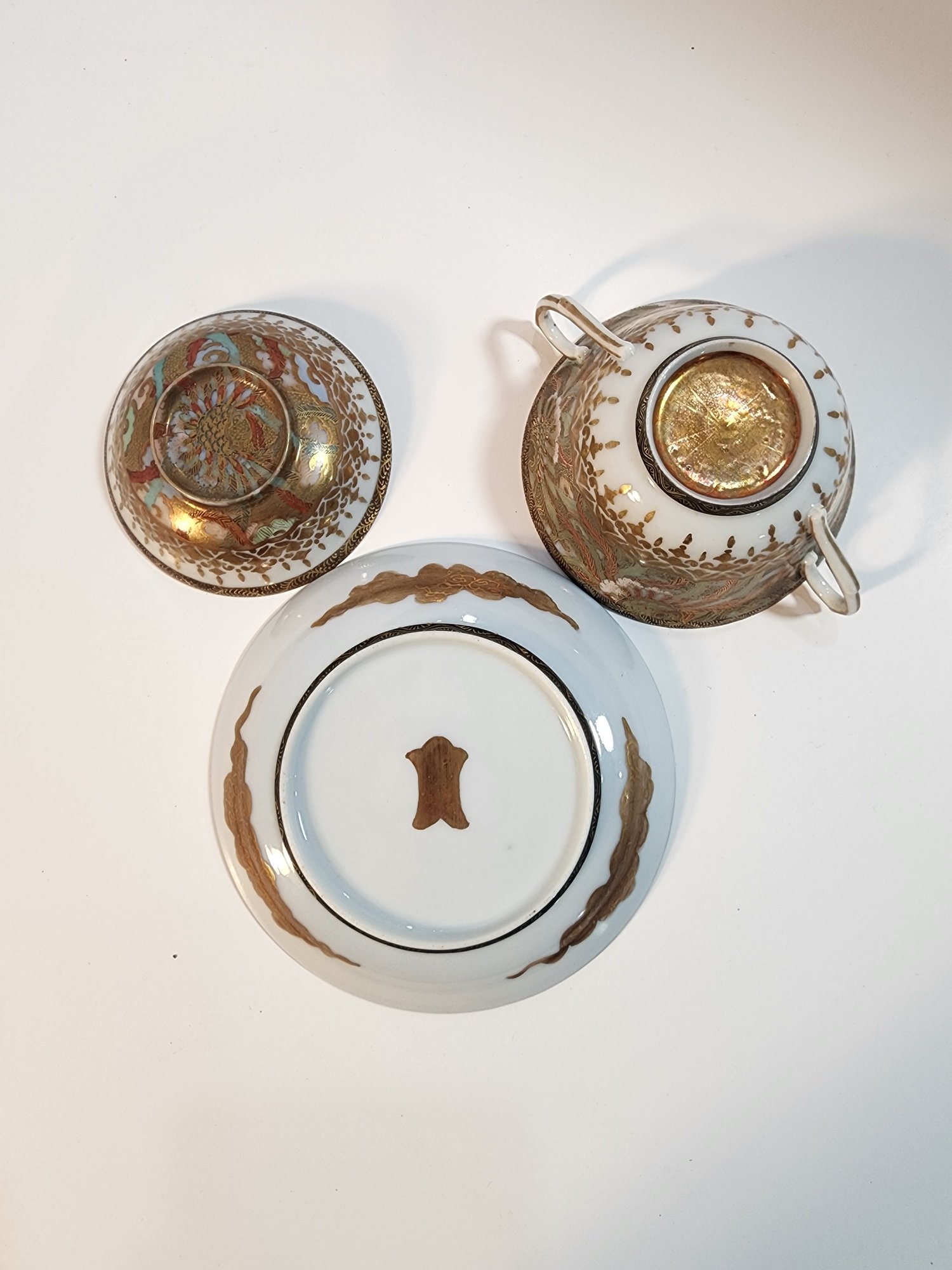 #113 BEAUTIFUL ANTIQUE ASIAN HAND PAINTED 3 PIECE TEA CUP SET