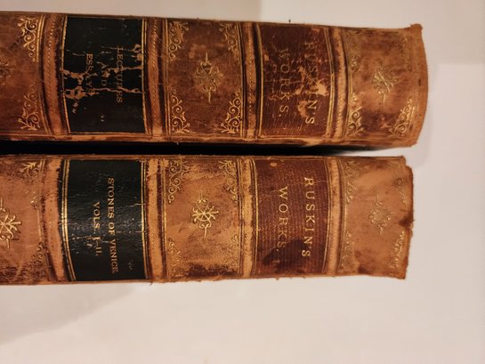 #119 RUSKIN'S WORKS SET OF 2 ANTIQUE BOOKS