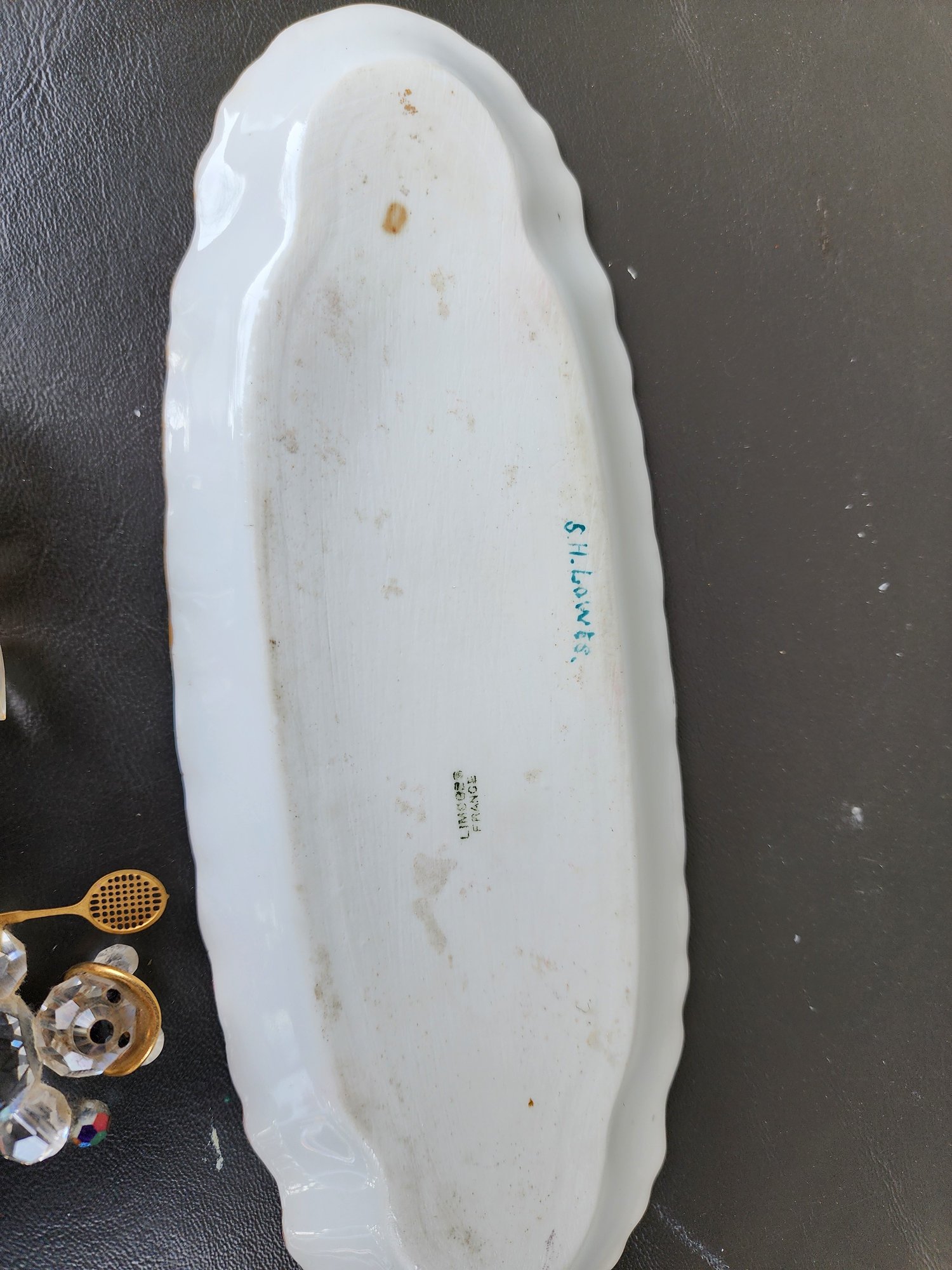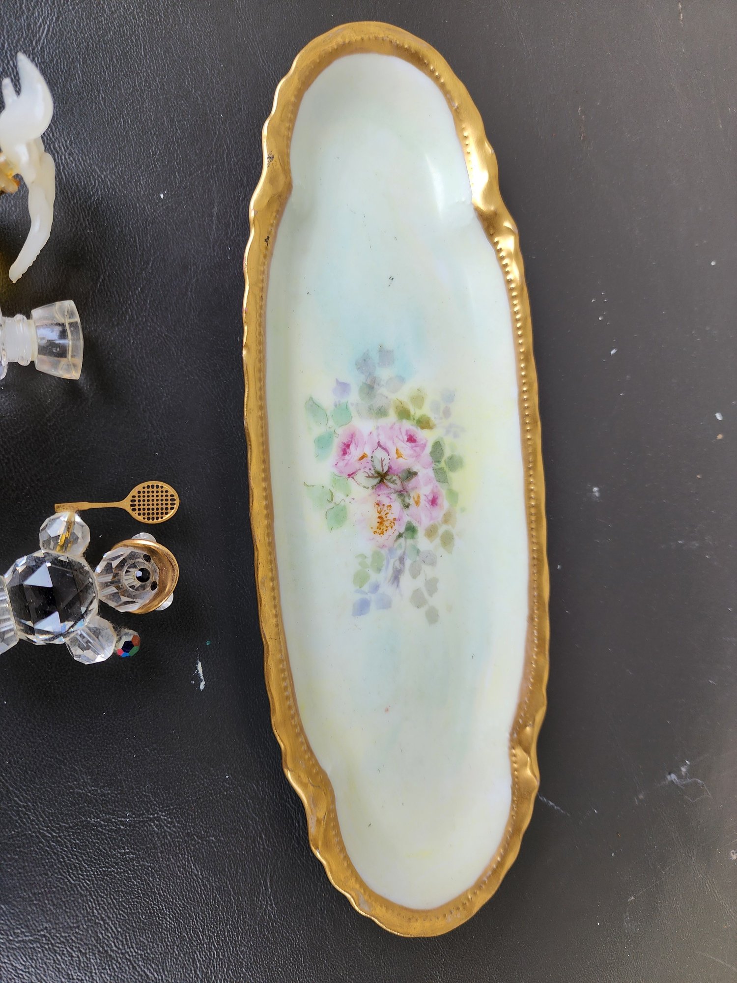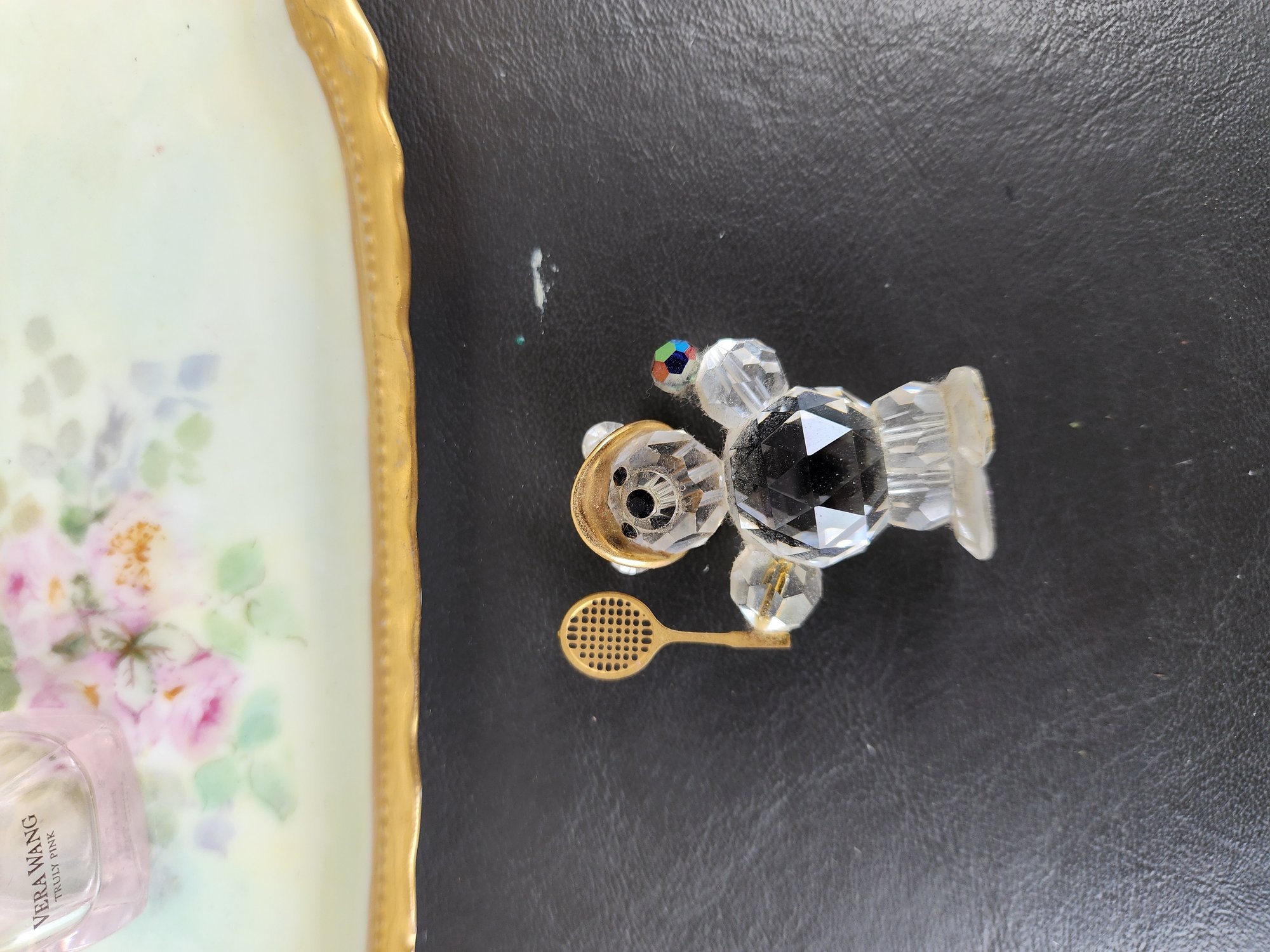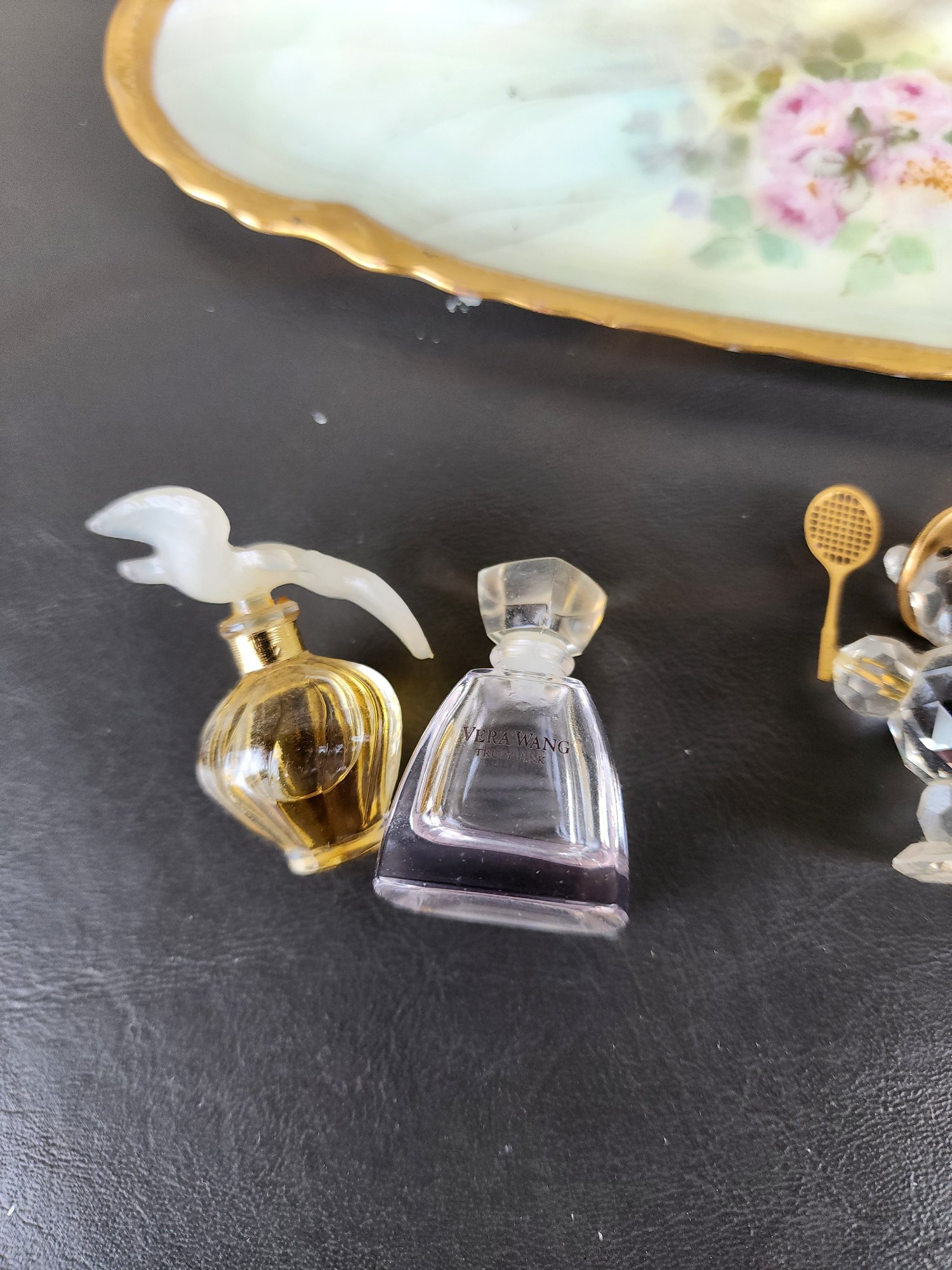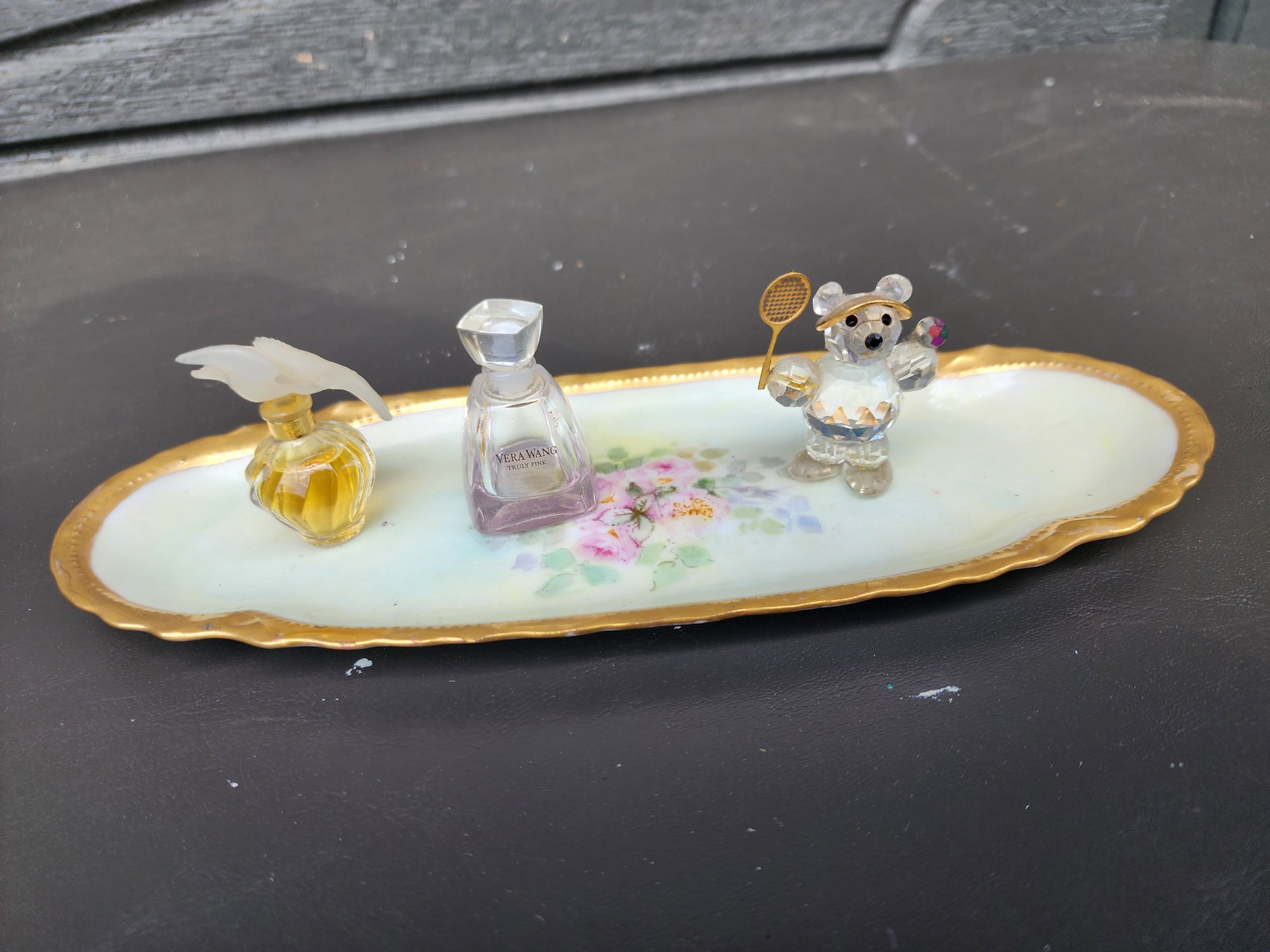 #125 Limoges Signed Hand Painted Dish By S.h. Lowes And 2 Mini Perfume Bottles And Swarovski Crystal Bear