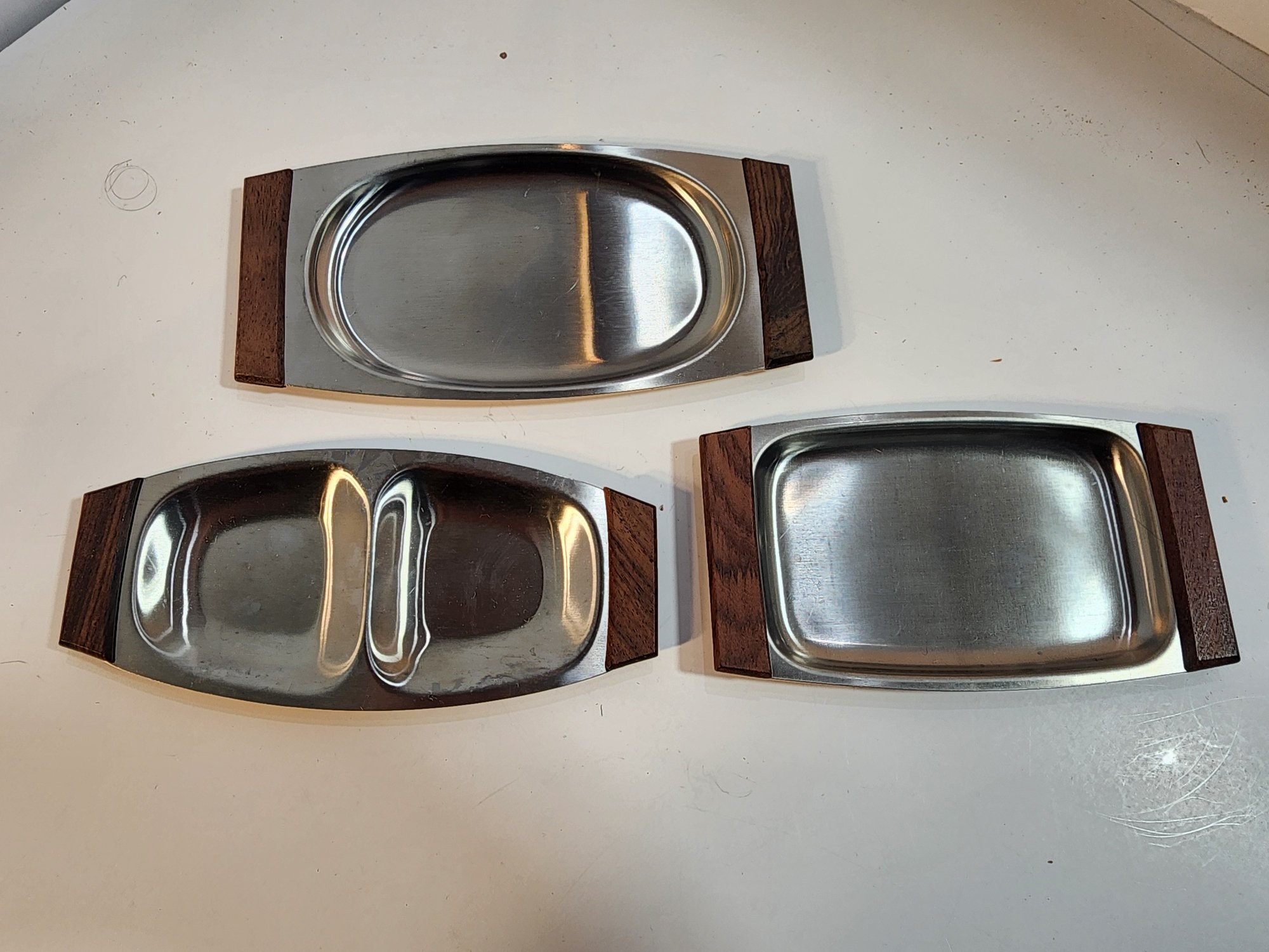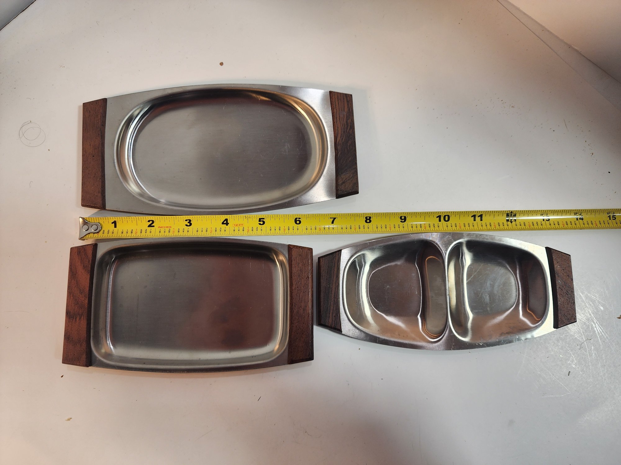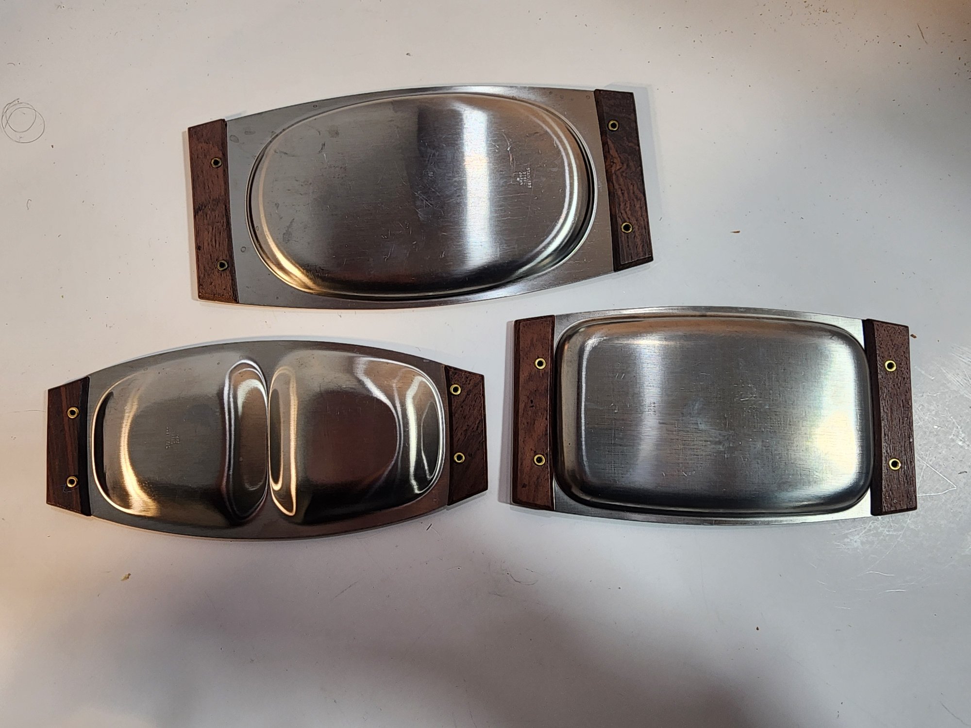 #136 MID CENTURY MODERN TEAK AND ALUMINUM NUT DISHES