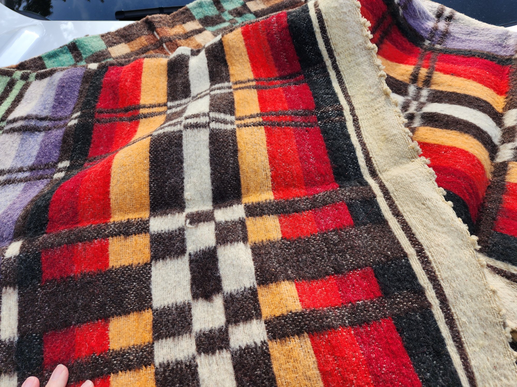 137 Vintage Wool Blanket With Beautiful Pattern 90x64
