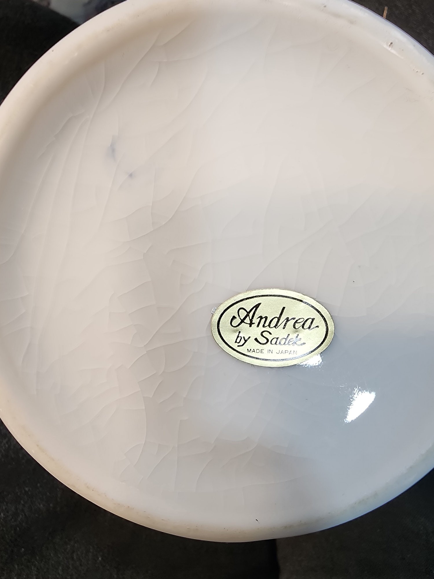 #138 VINTAGE ANDREA SADEK BLUE AND WHITE BISCUIT JAR