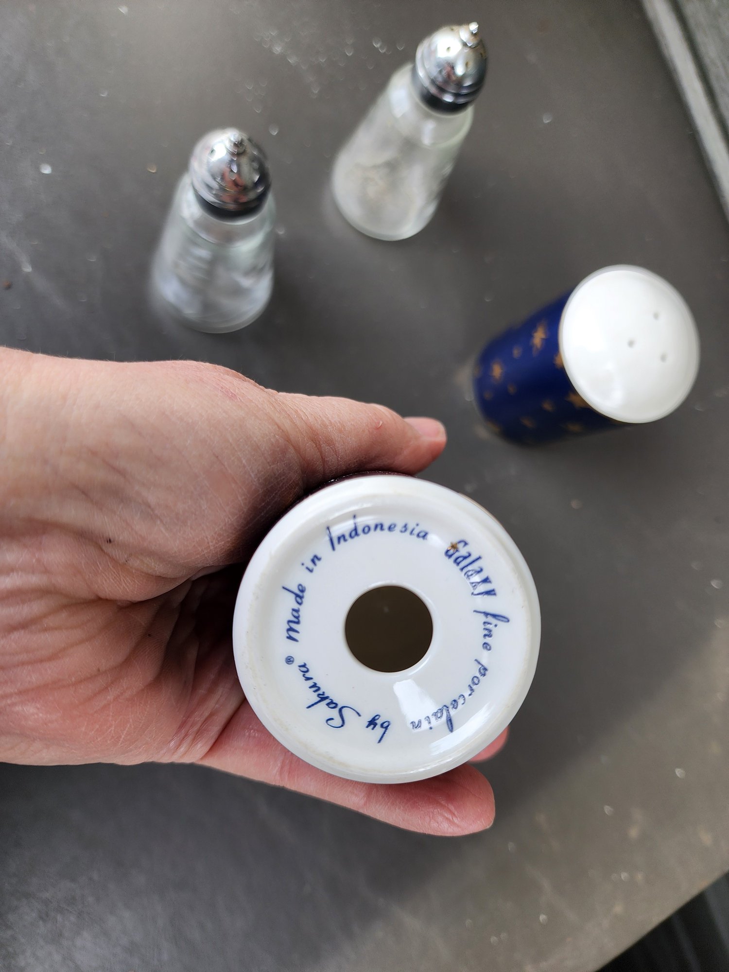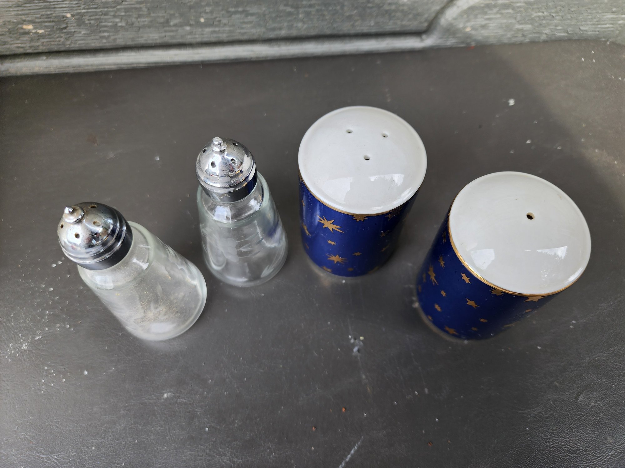 #142 Crystal And Pottery Salt And Pepper Shakers