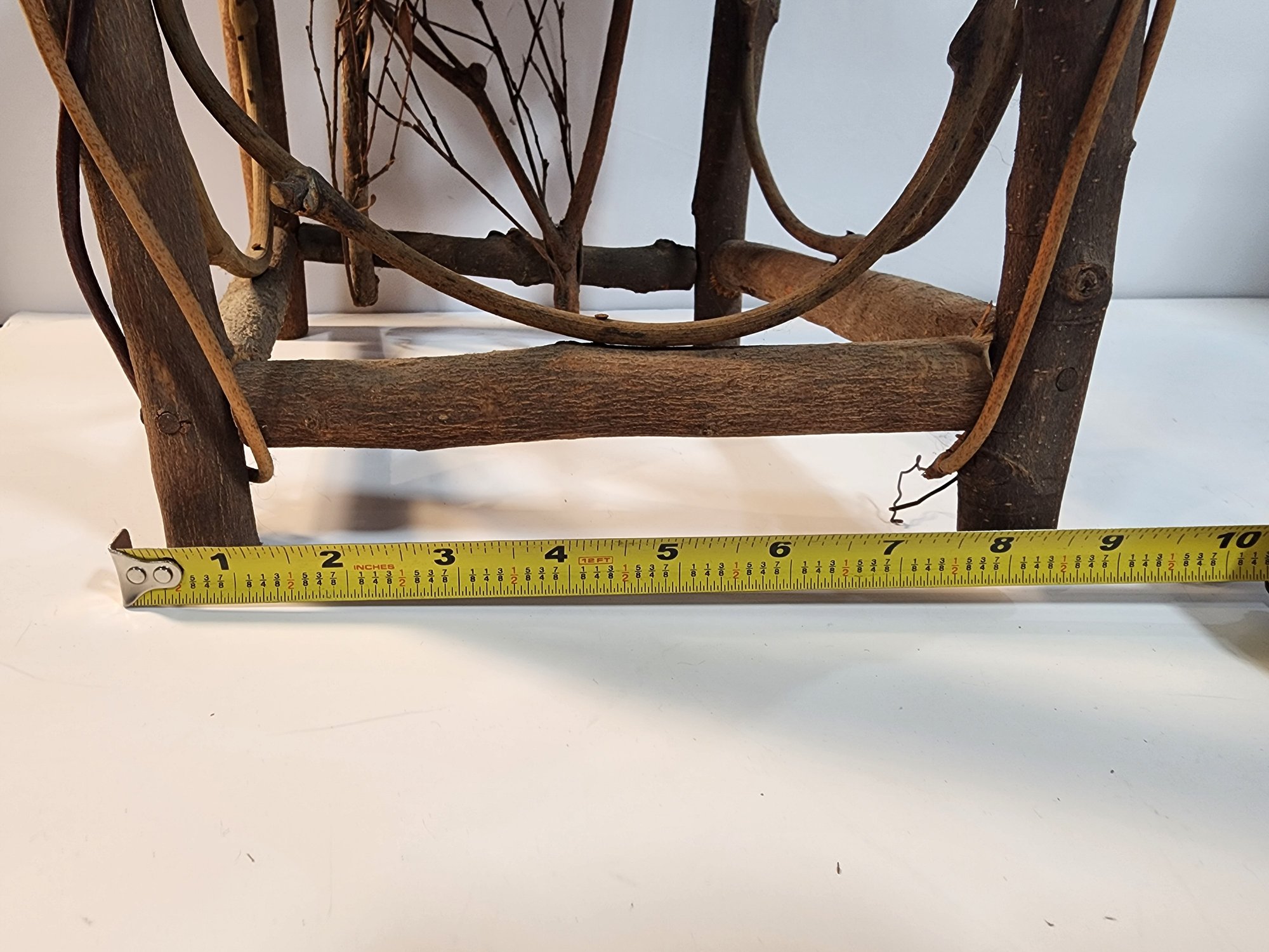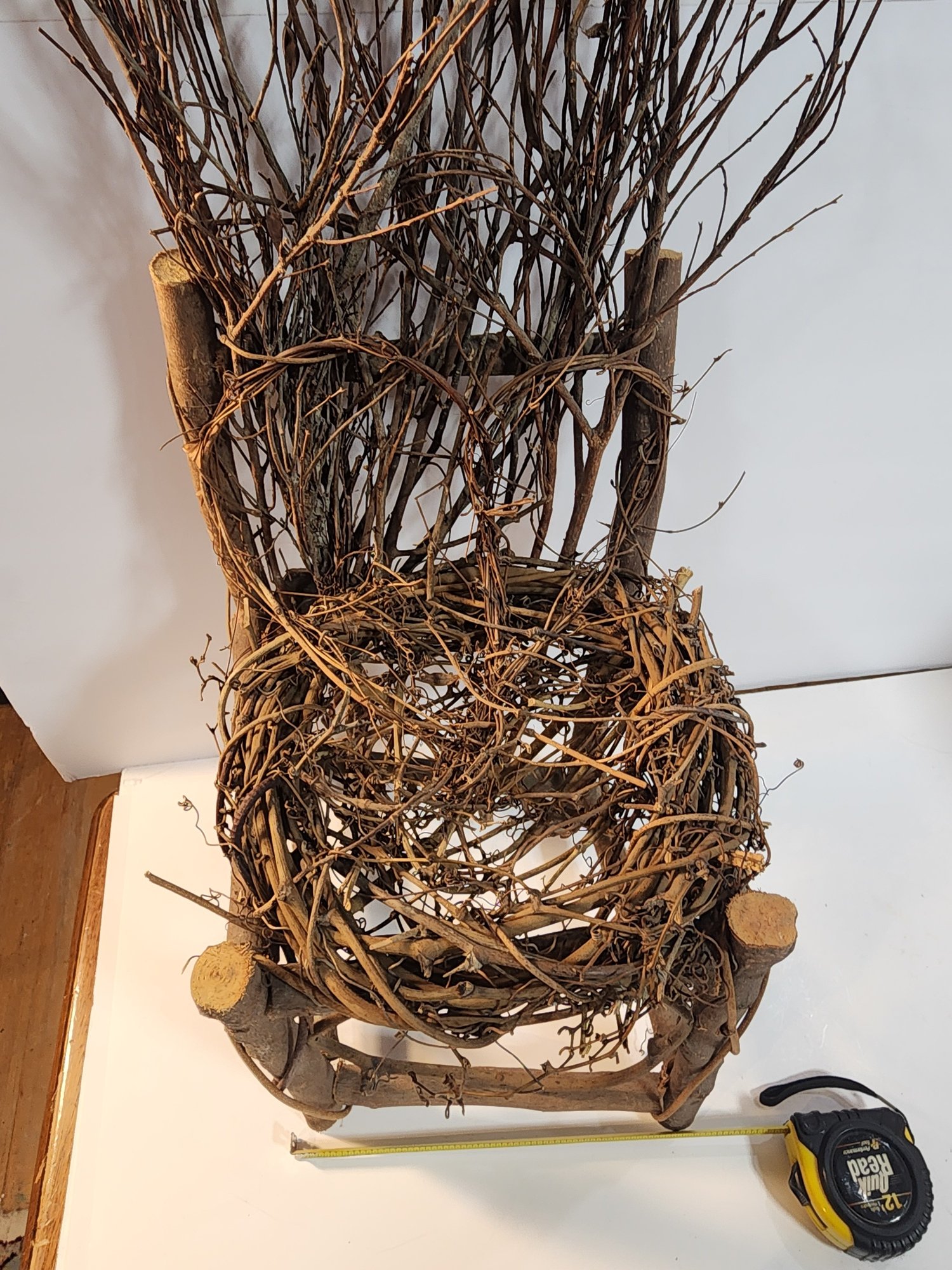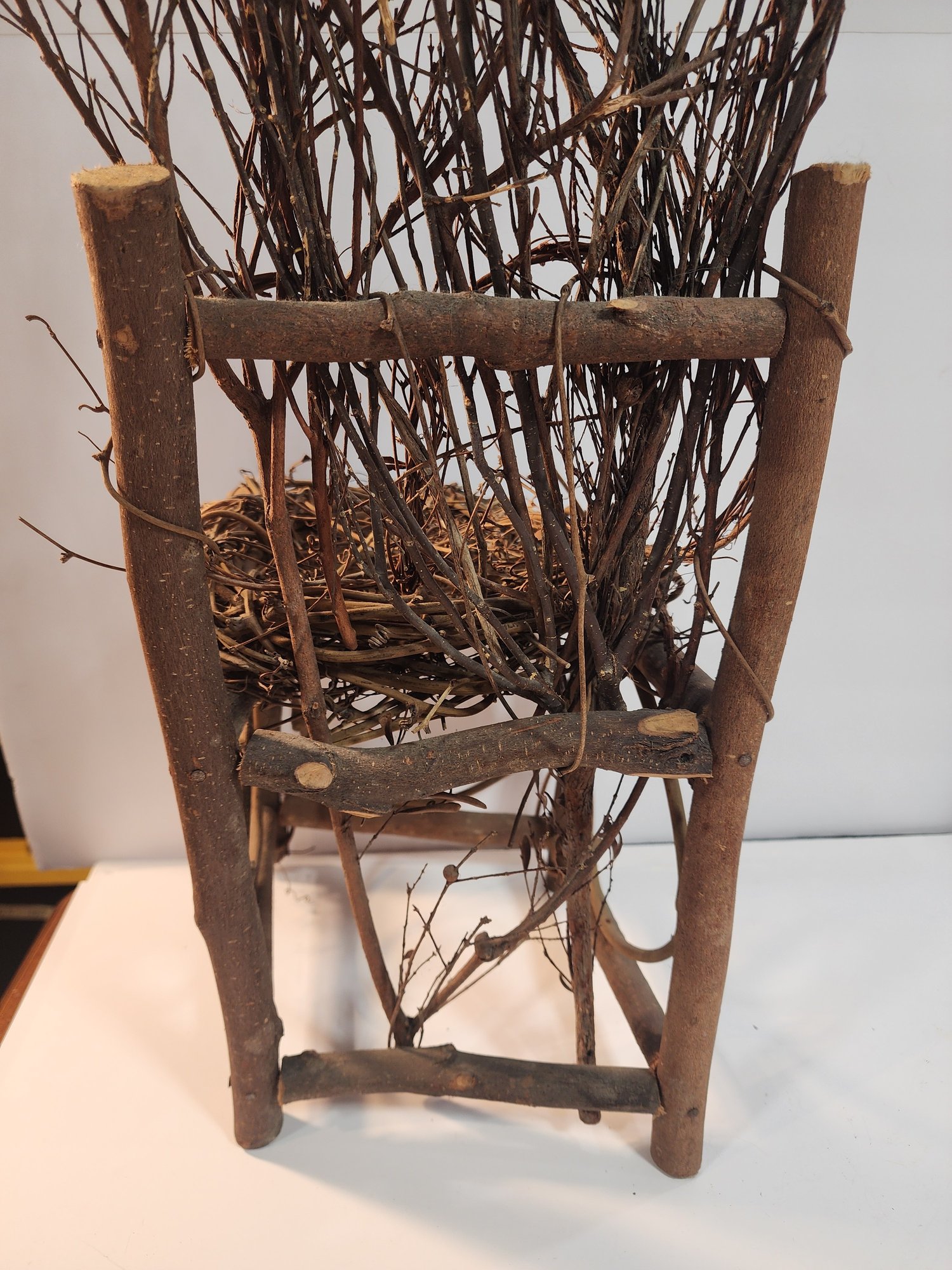 #143 OUTDOOR TWIG DECOR CHAIR AND METAL TABLE