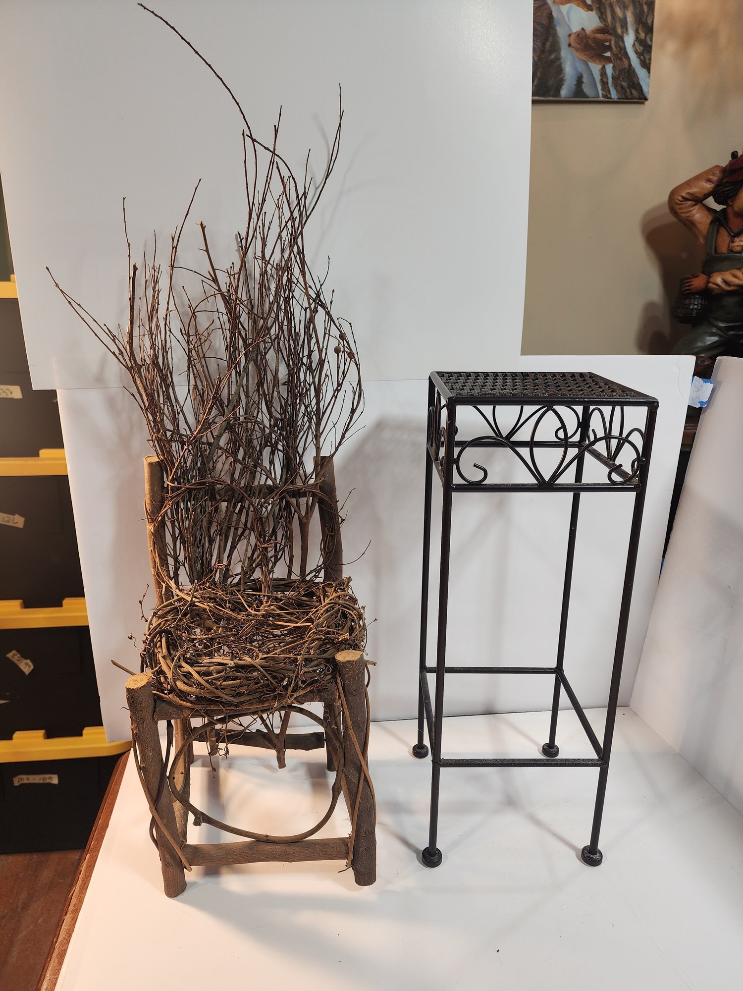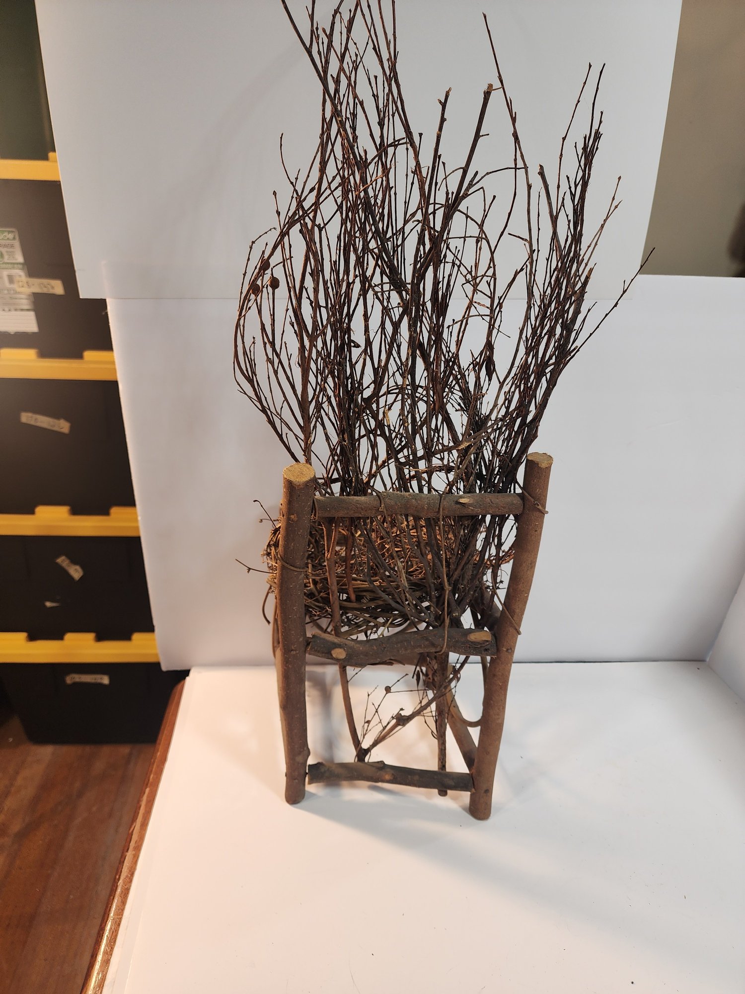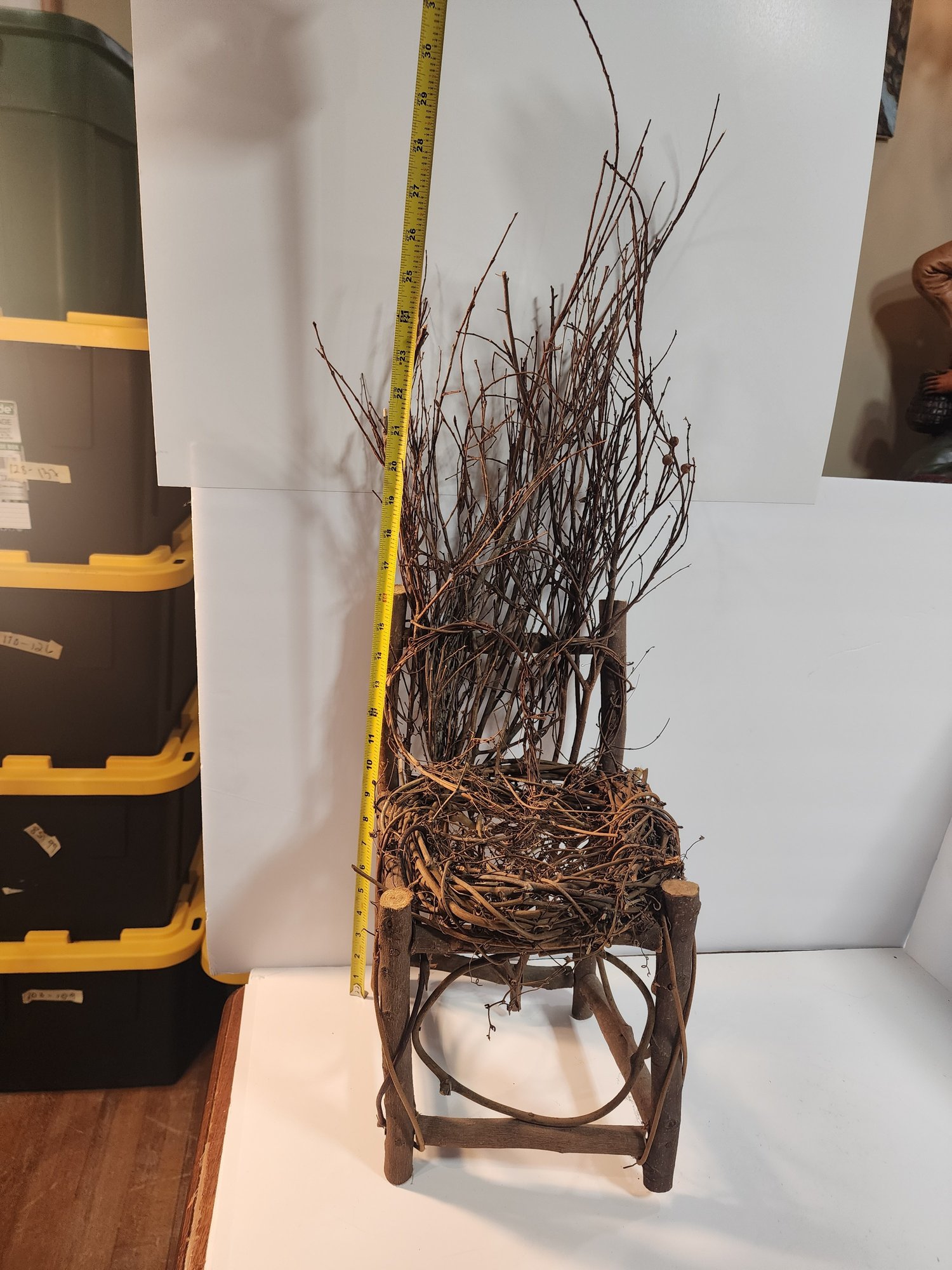 #143 OUTDOOR TWIG DECOR CHAIR AND METAL TABLE