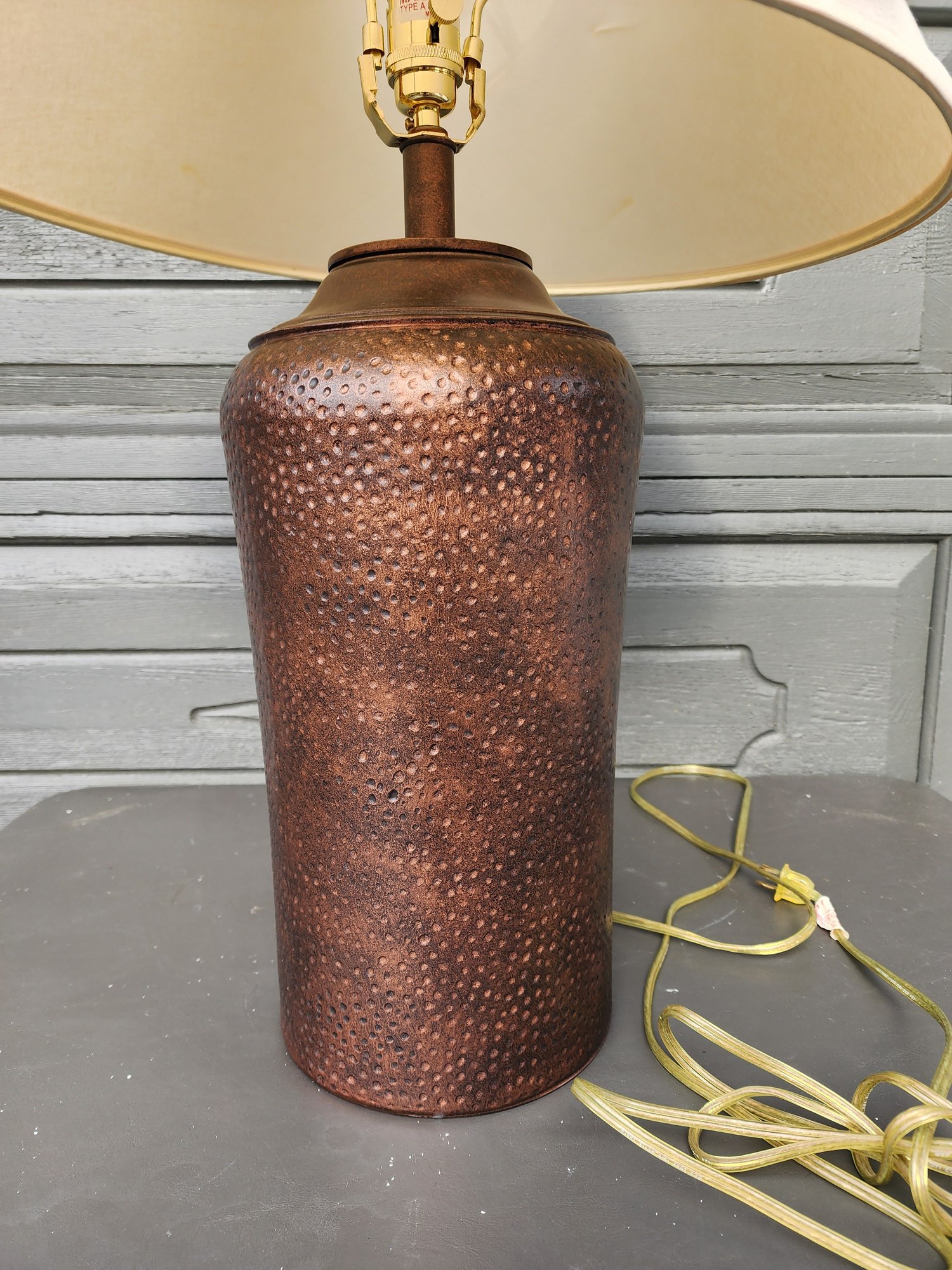 #156 Amson Brass Copper Punched Lamp With Shade. Large And Awesome