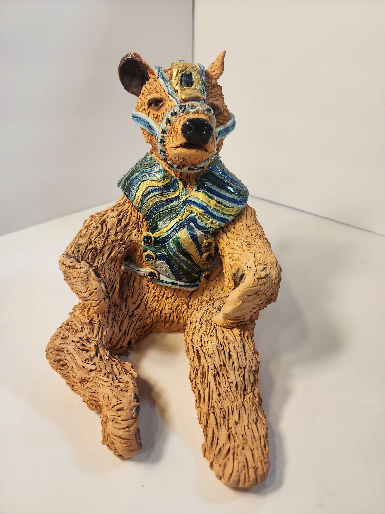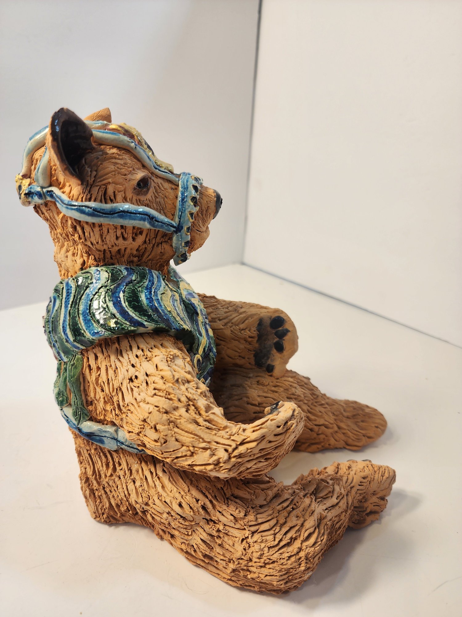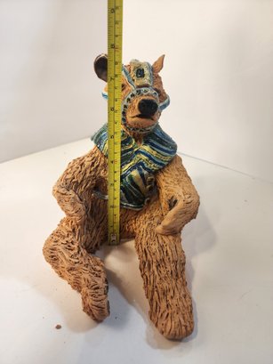 #158 UNIQUE SCULPTED CLAY SITTING BEAR