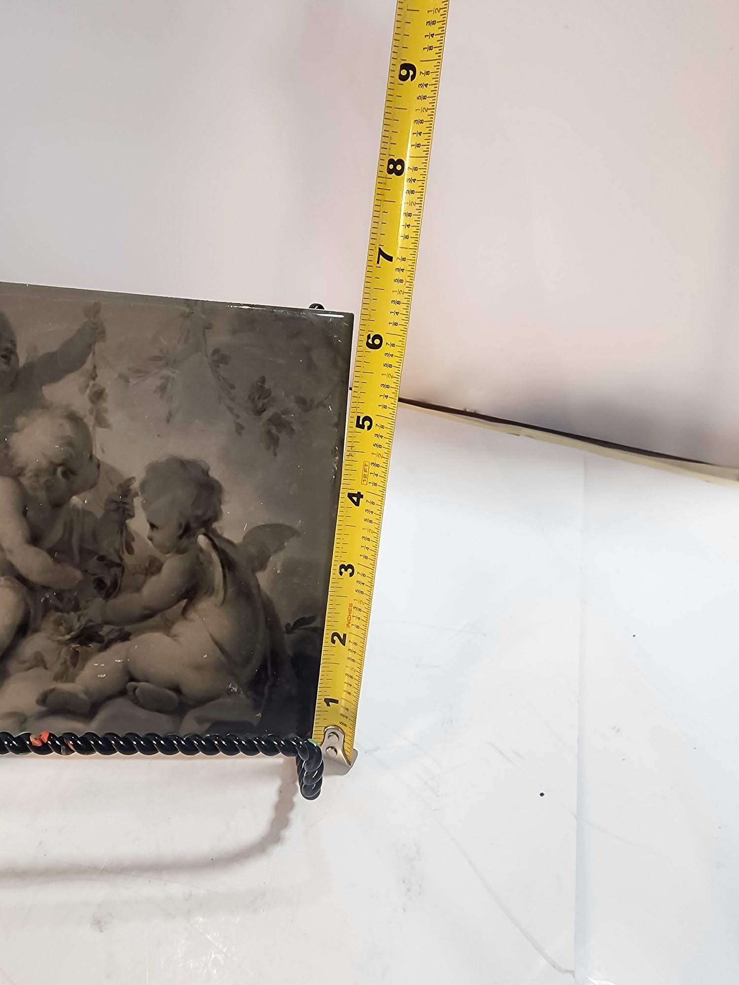 #169 BEAUTIFUL FRENCH TILE WITH CHERUBS AND MONOCHROMATIC COLORS