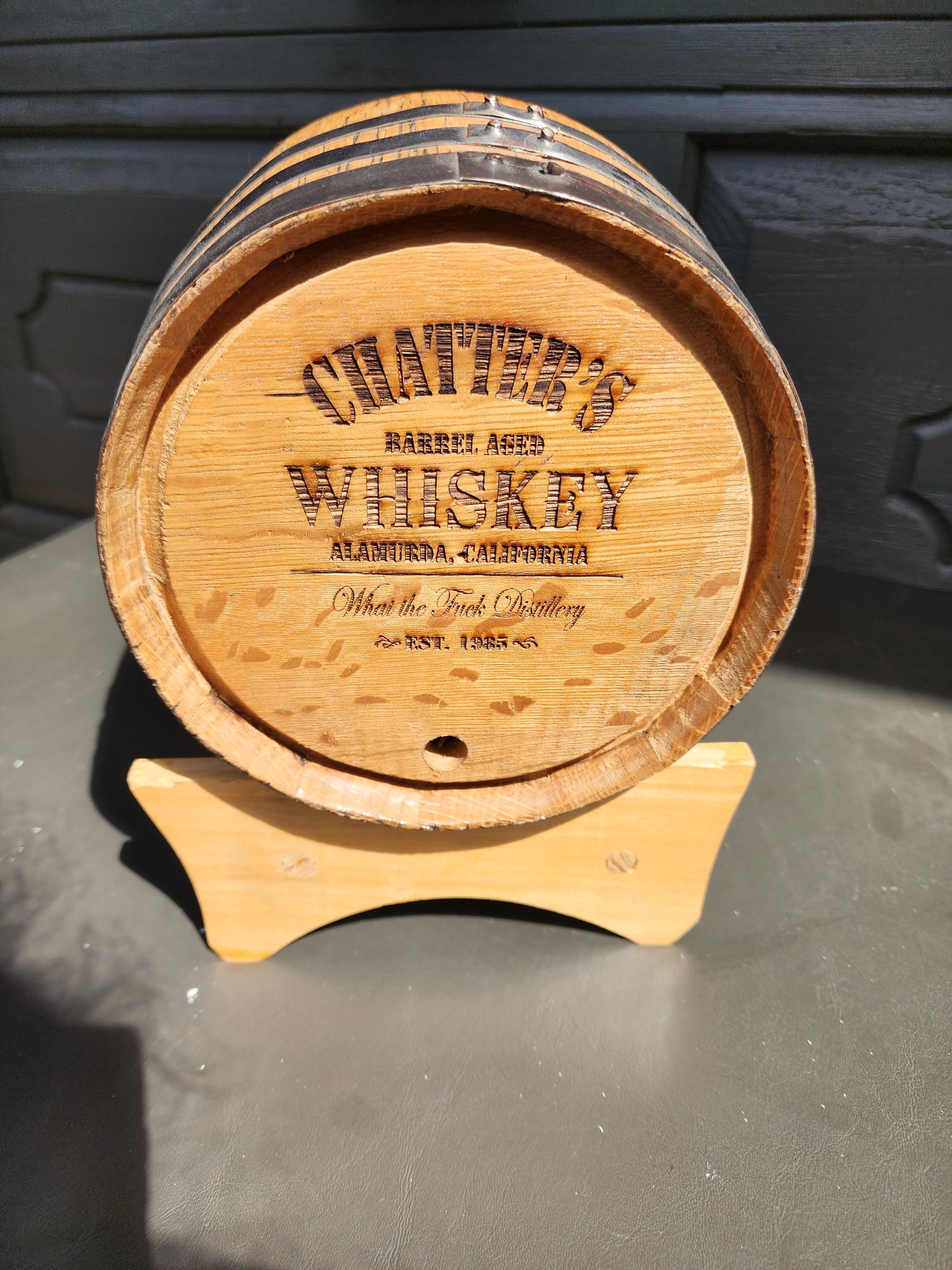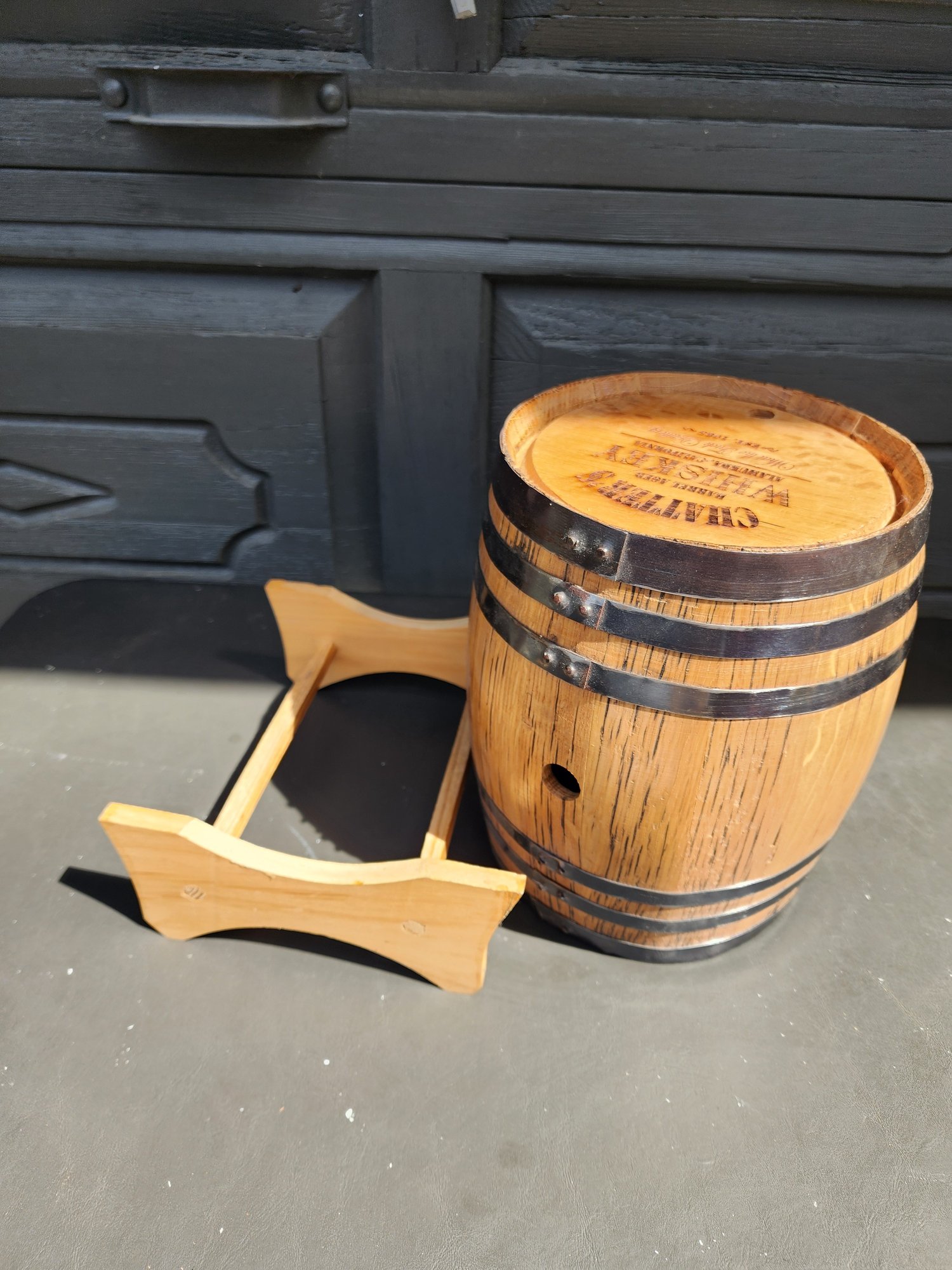 #184 Whiskey Barrel On Stand From Chatters Aged Whiskey