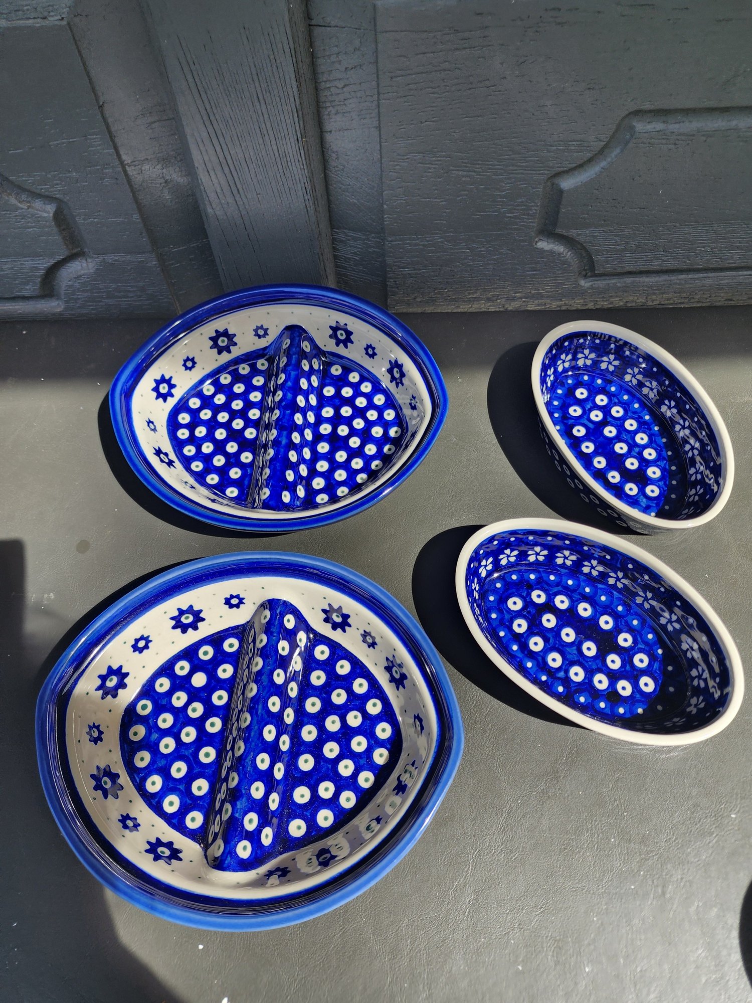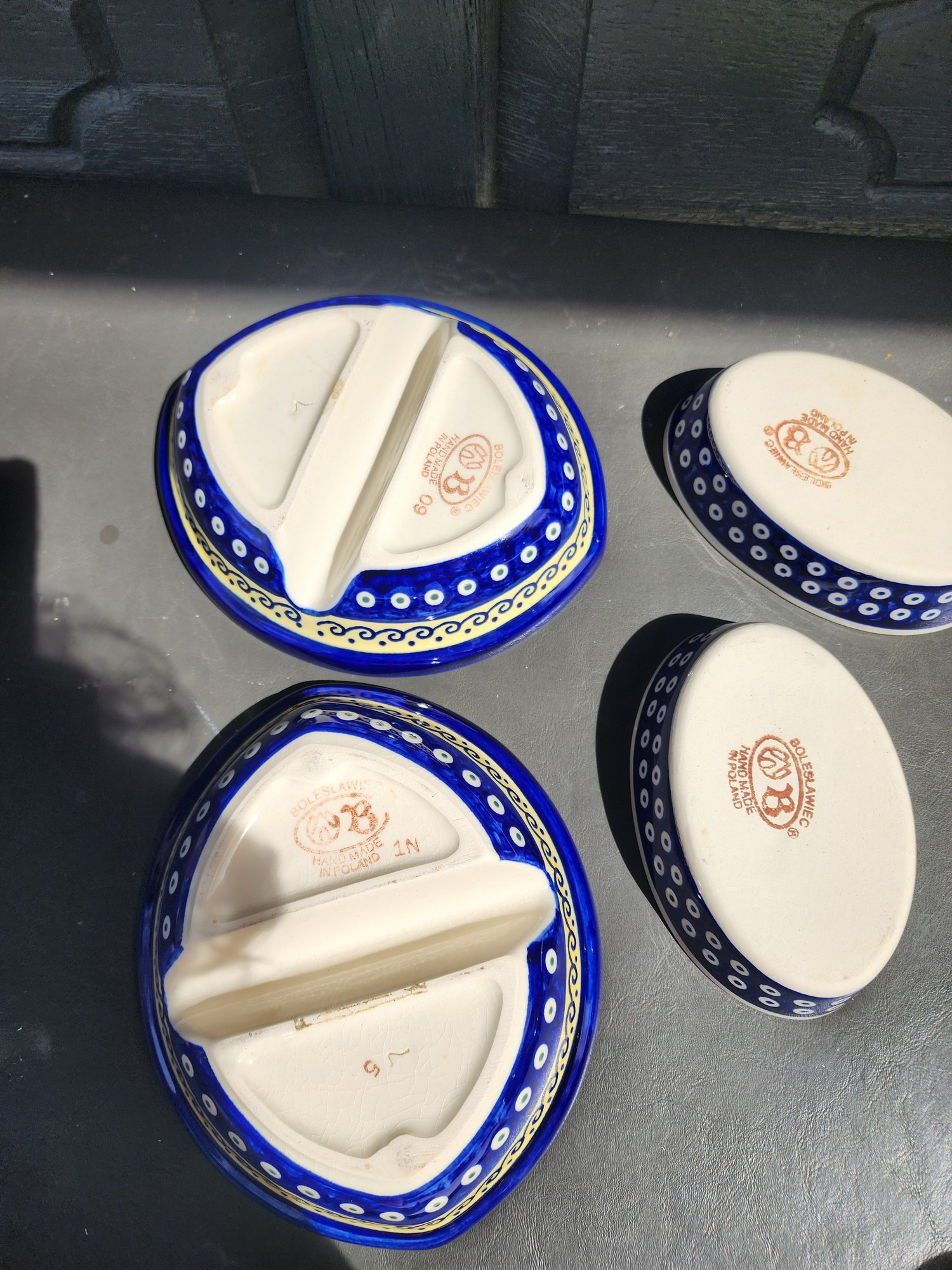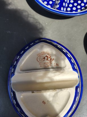 186 Boleslaweic Polish Hand Made And Painted Sectioned Plates And 2 Serving Plates