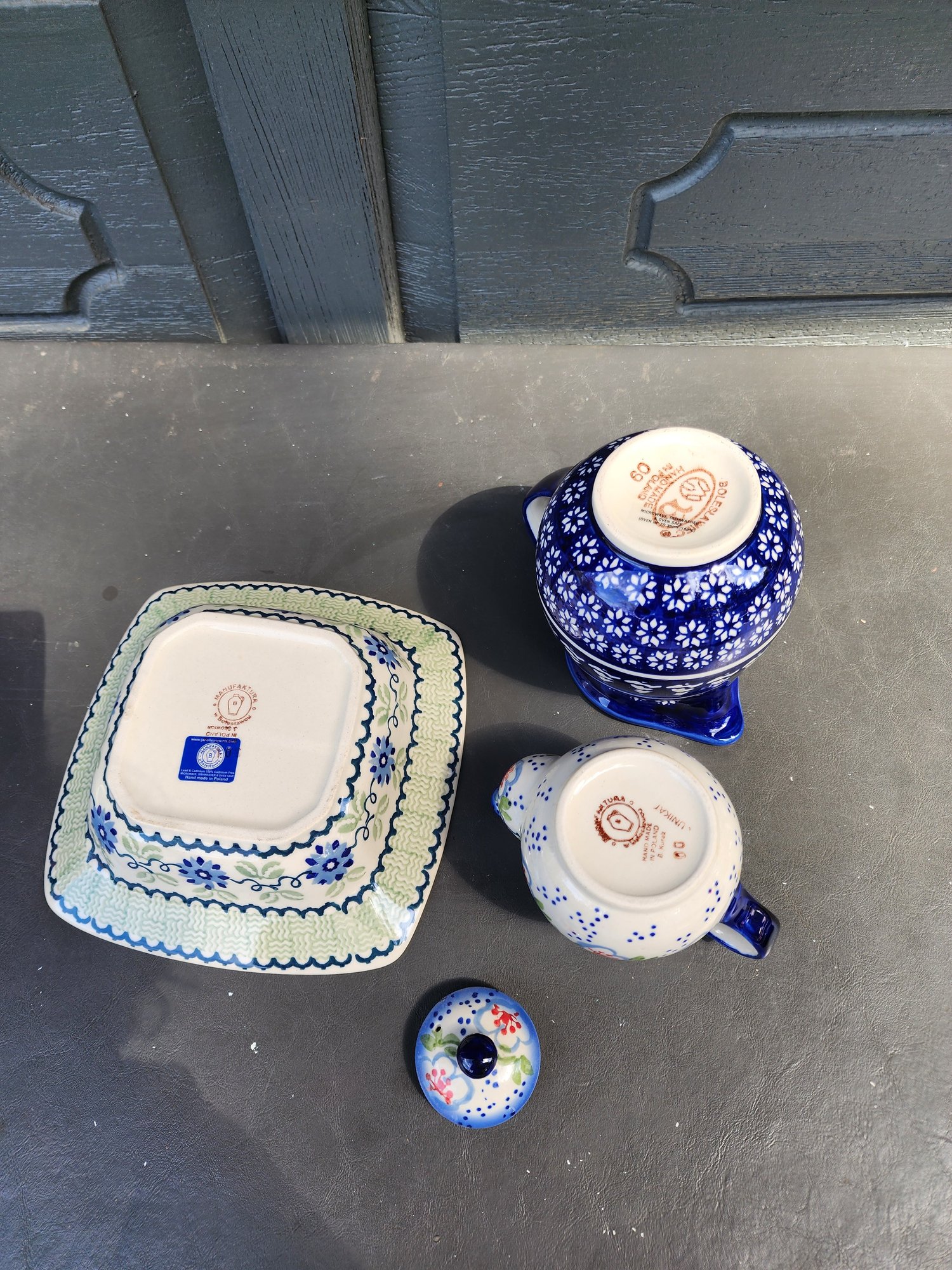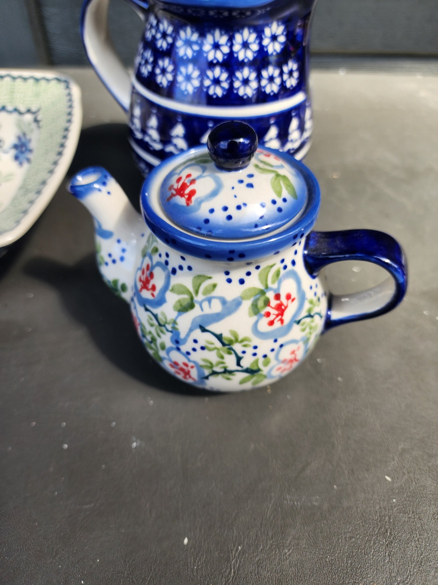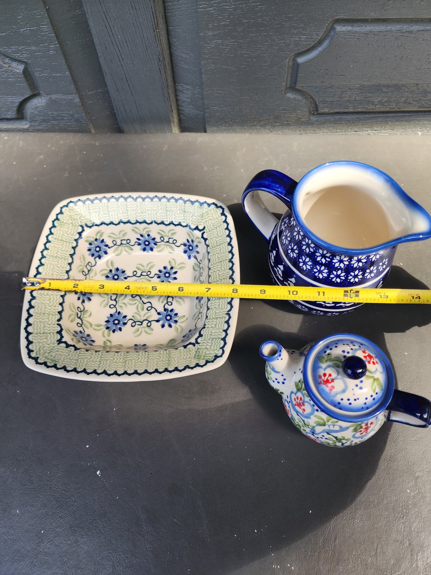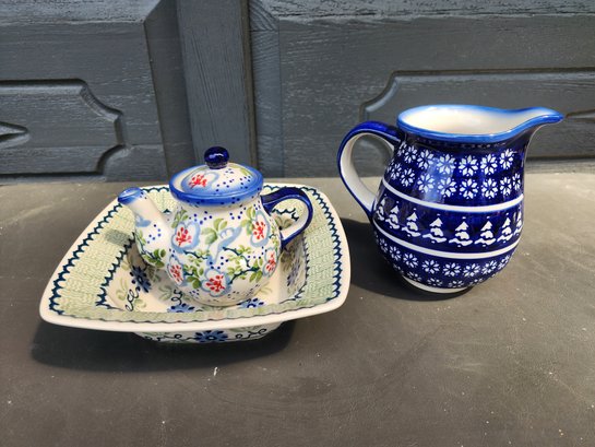 #188 3 Boleslaweic Polish Hand Made And Painted Beautiful Dishes