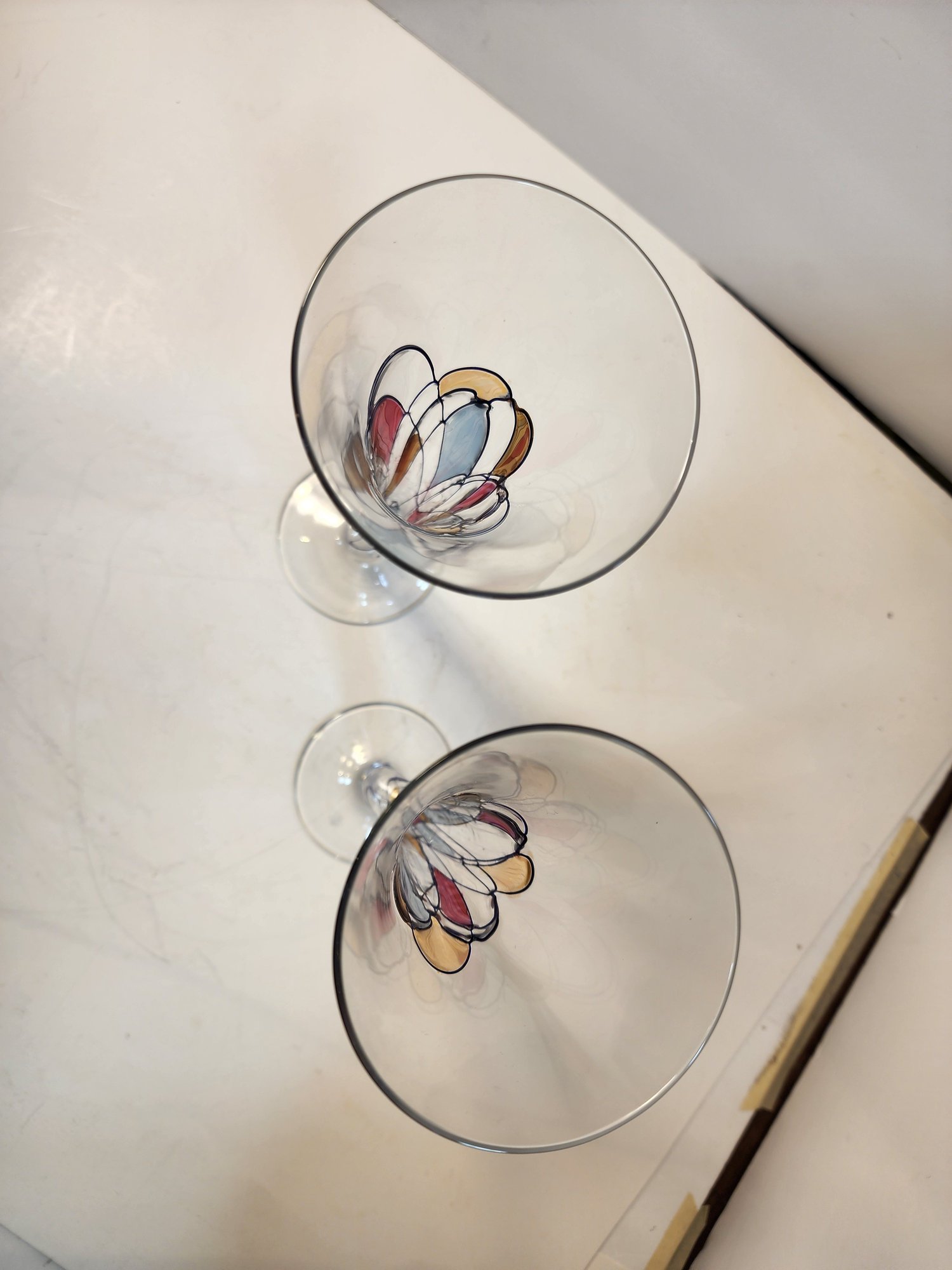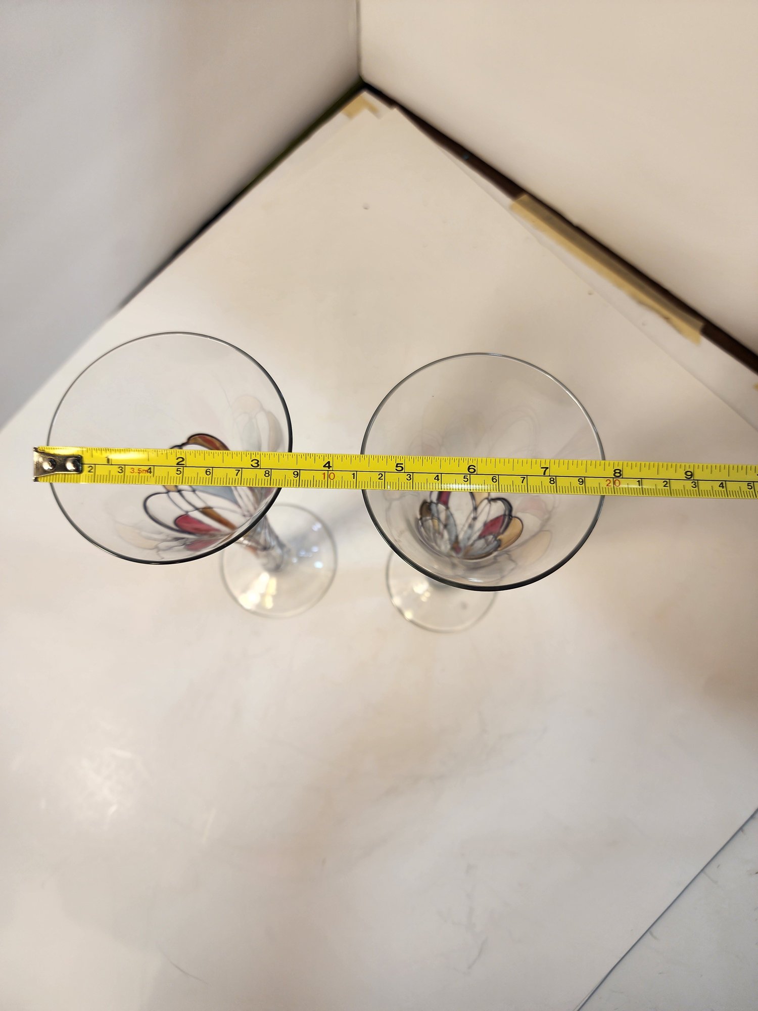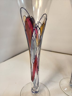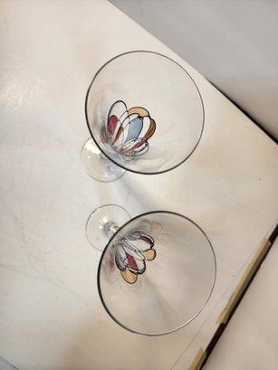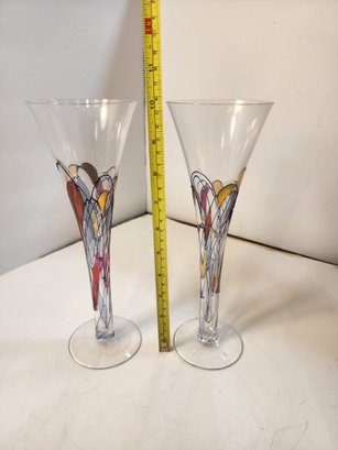 #188 GORGEOUS SET OF 2 HAND PAINTED CHAMPAGNE GLASSES
