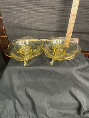 PAIR OF TOPAZ YELLOW FOOTED WITH SCALLOPED EDGE DESIGN