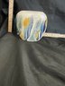 VASE FETURES DESGN OF BLUE PRUPLE AND PEACH COLORS 4 INCHES TALL WITH GLOSSY FINSH AND HANDMADE PRODUCTION AT TO THE CHARM