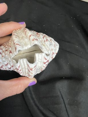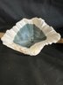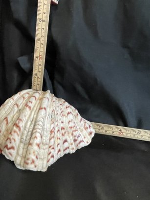 MATCHING SIDES OF CLAM SHELL WITH SMALL HOLE AT PEAK. BOTH SIDES HAND PAINTED INTERIOR/SAILBOAT WITH FIGURE AND MOUNTAINS/SENCOND SIDE LAKE WITH BIRDS DUCKS AND GRASS.