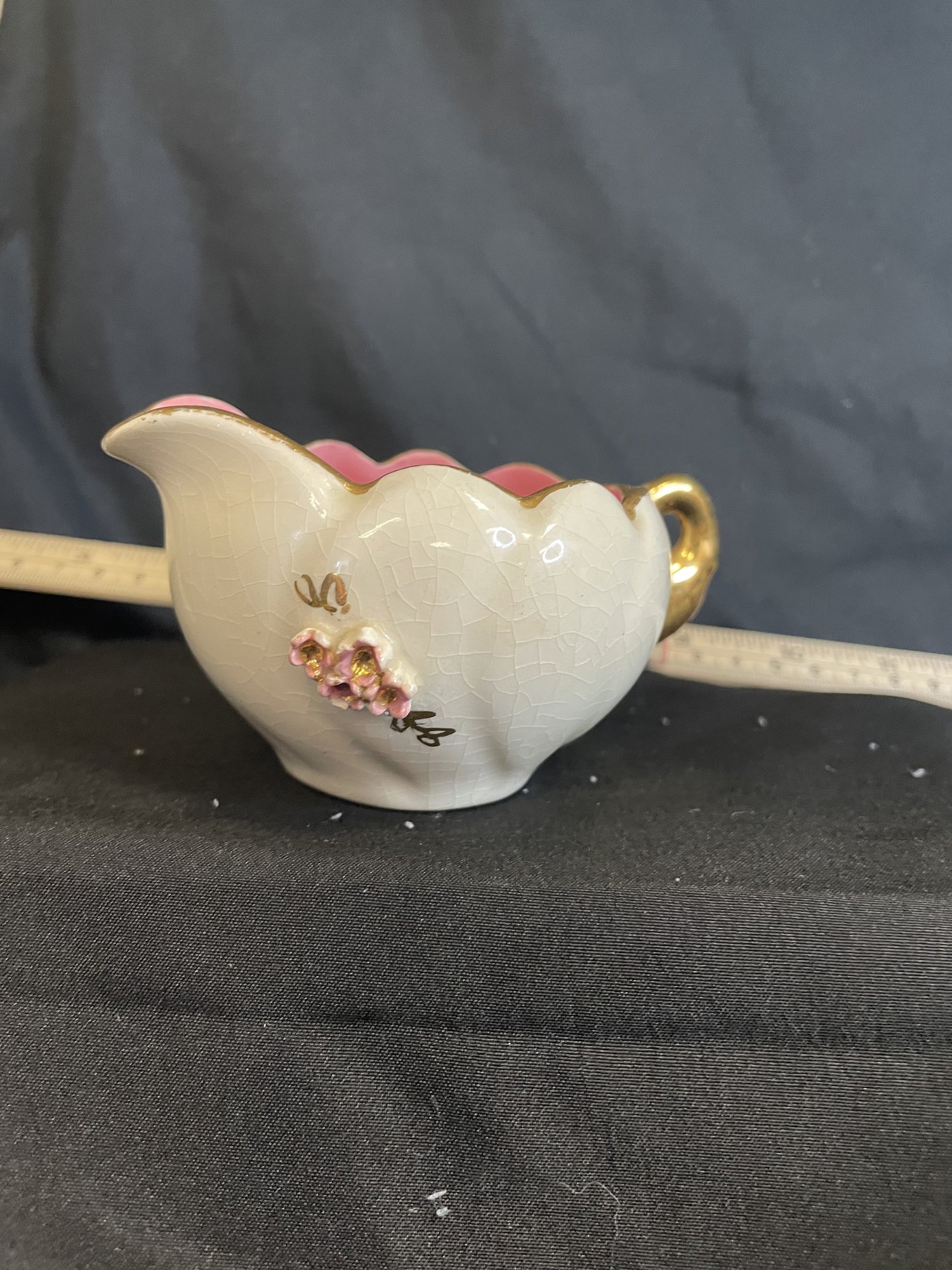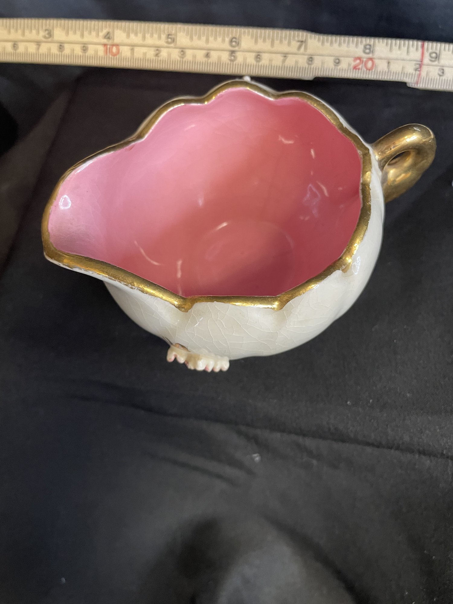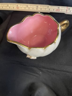 SMALL CREAMER PORCILEN HANDLE AND SCALLOPED RIM IN 24 CARROT GOLD