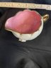 EXTERIOR IS CREAM WITH 3D PINK FLOWERS, INTERIOR BUBBLE GUM PINK HAND PAINTED CRAZING INSIDE AND OUT