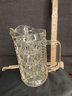 VINTAGE CLEAR GLASS BUTTON AND CANE DESIGN SMALL PITCHER WITH HANDLE