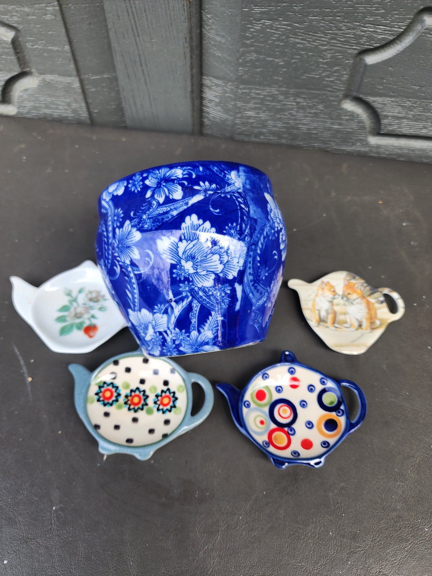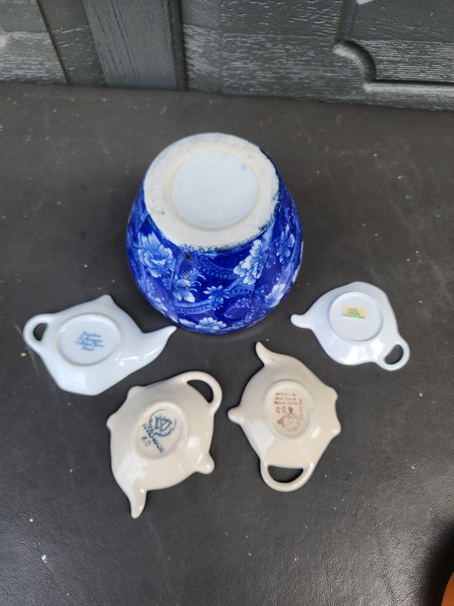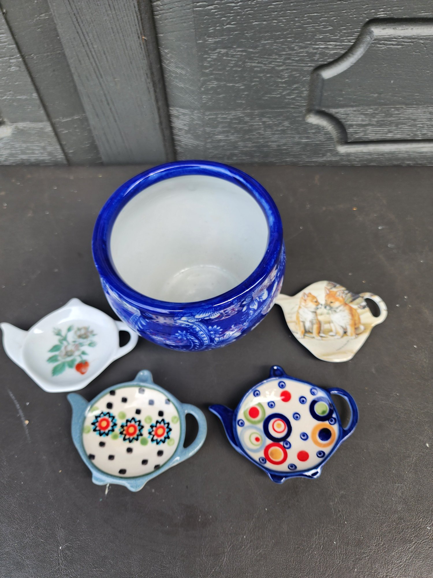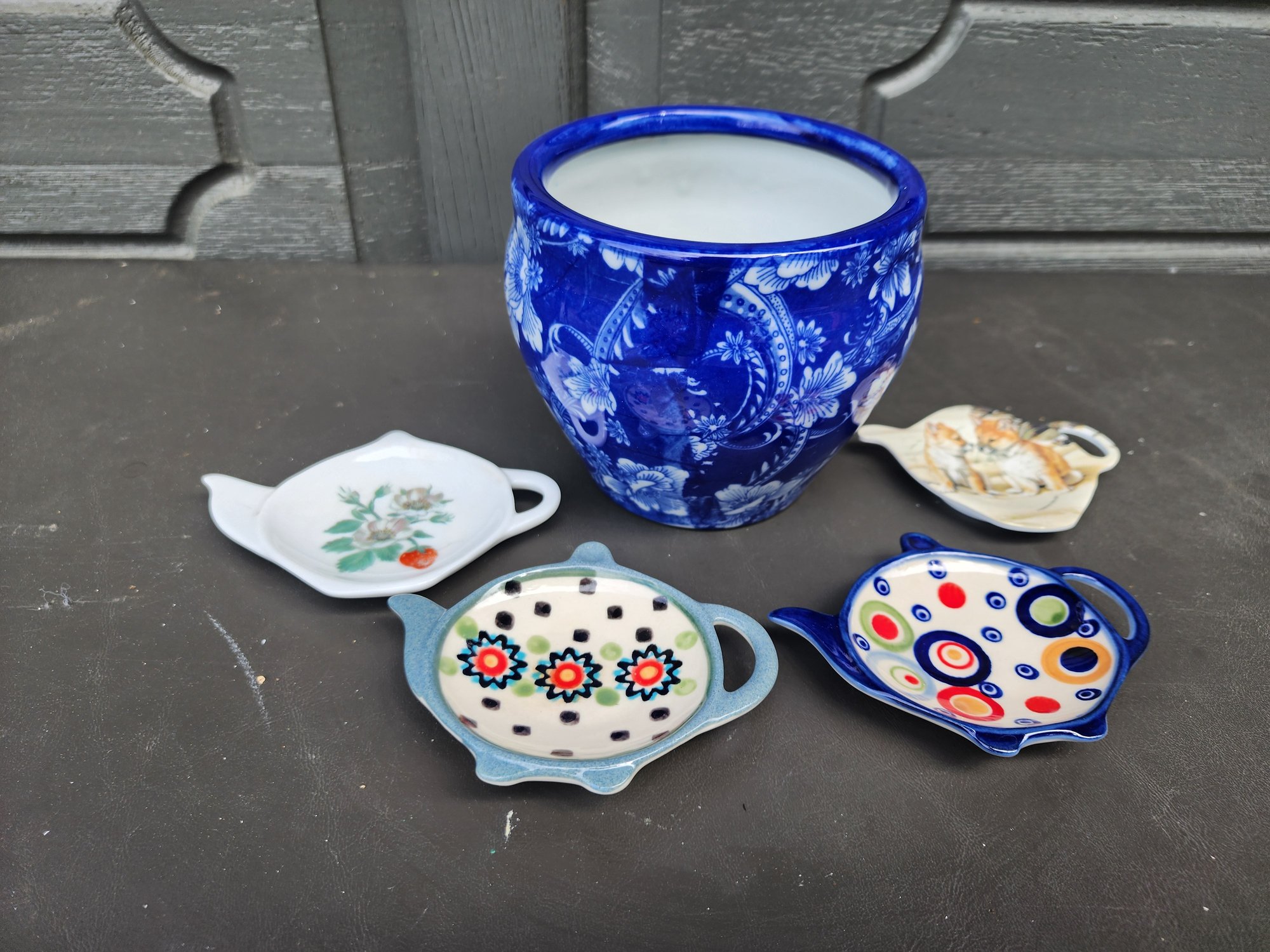 #200 Blue Pot And Lot Of 4 Tea Bag Rests