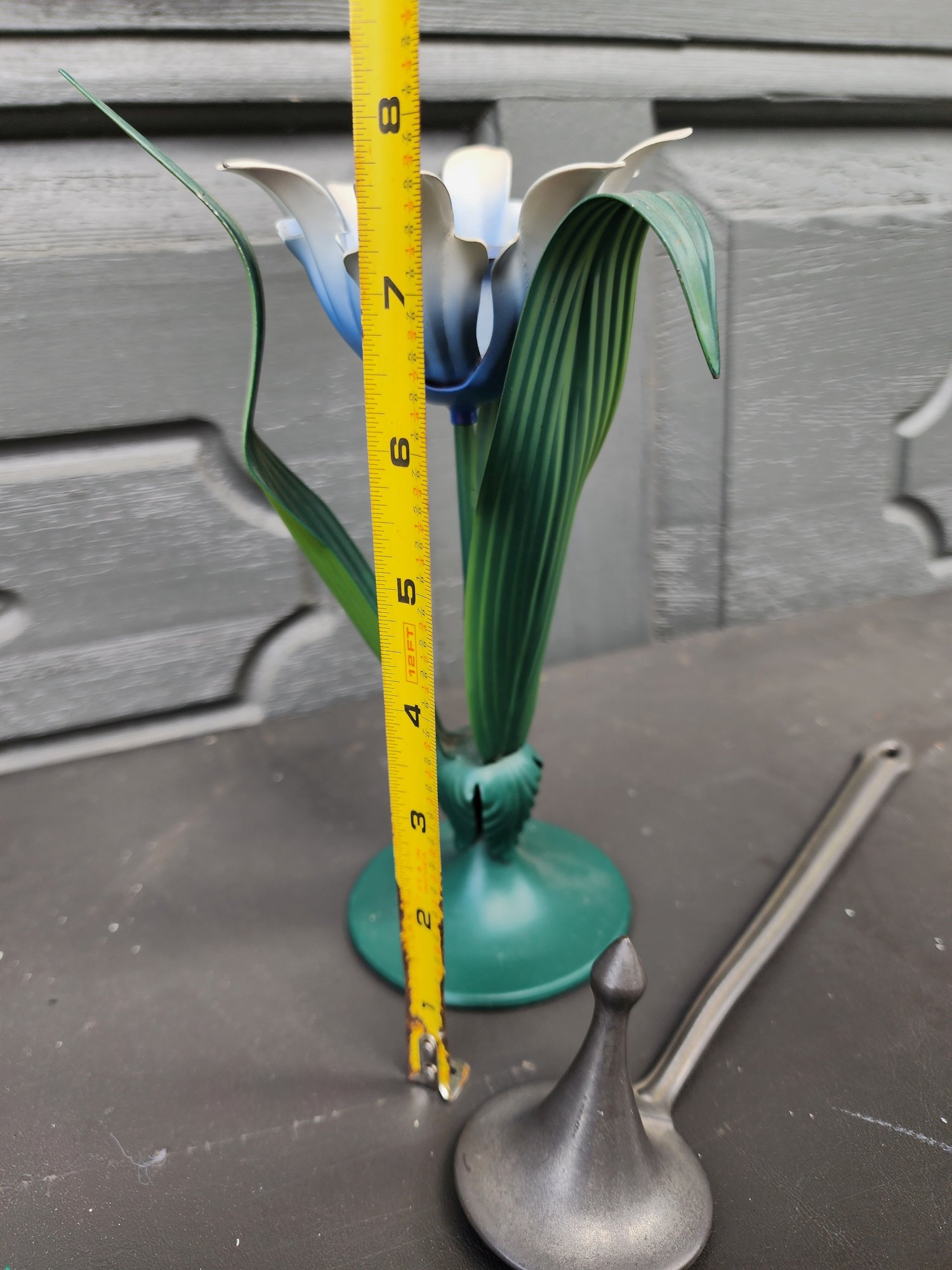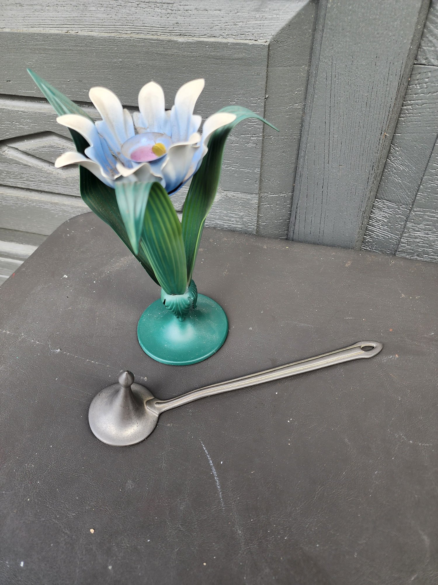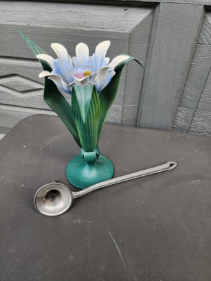 #204 Tole Flower Candle Holder And Pewter Candle Snuffer