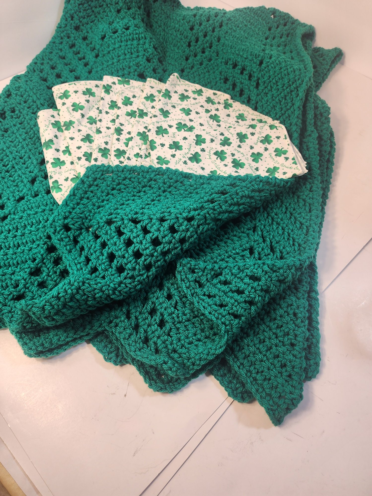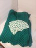 #212 Kelly Green Hand Knitted Throw And 8 Napkins