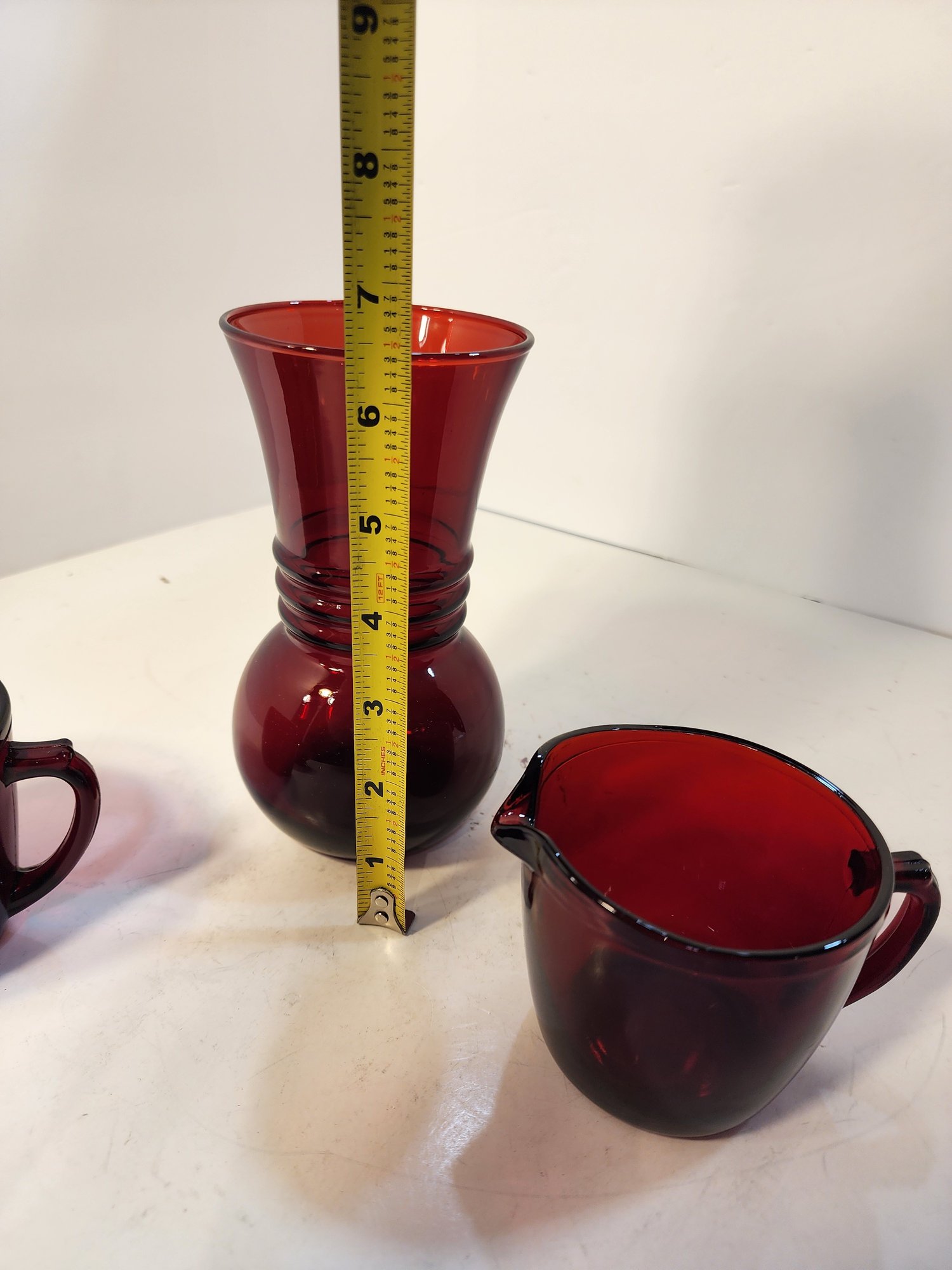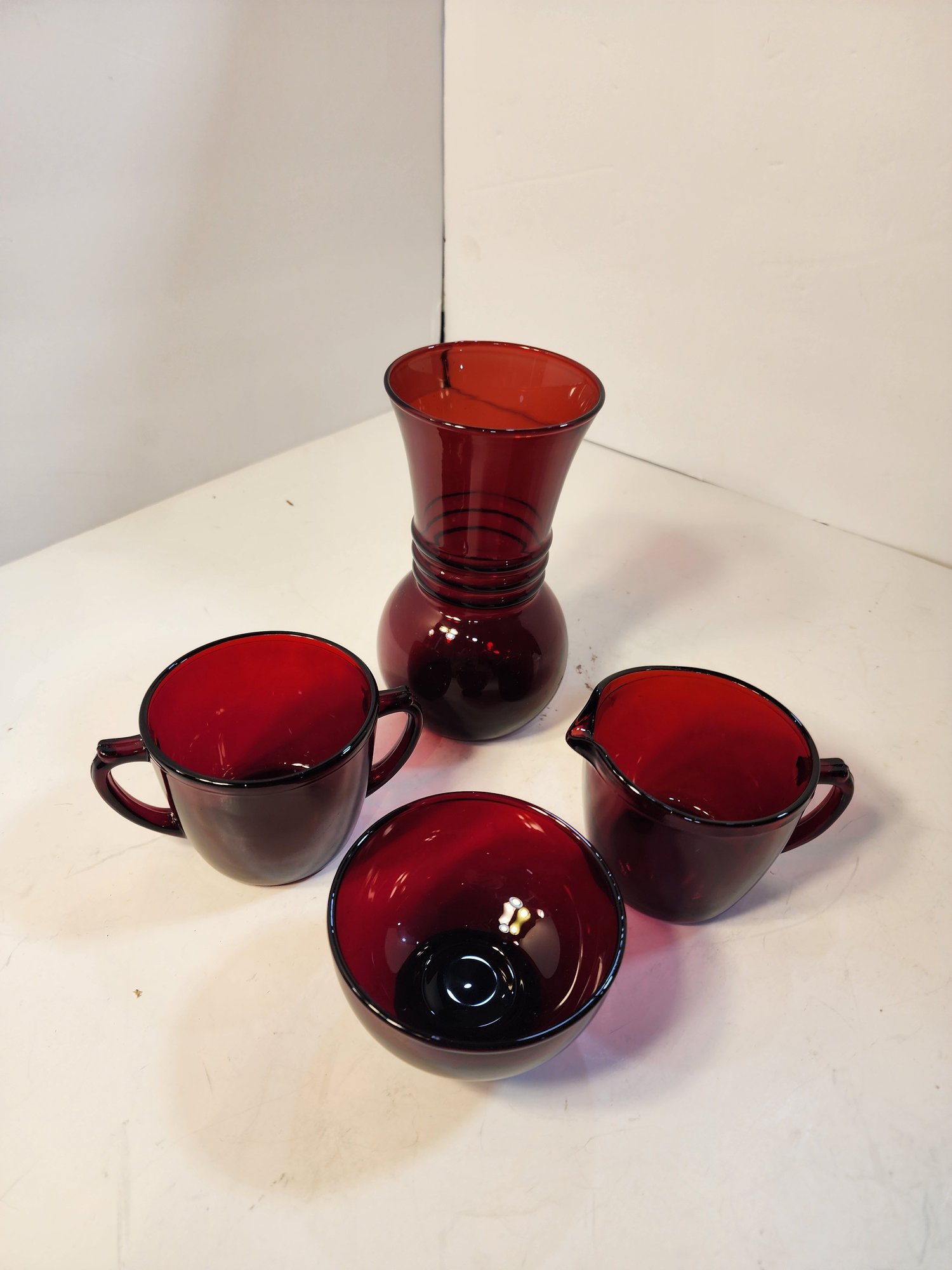 218 Lot Of Anchor Hocking Royal Ruby Red Creamer, Sugar, Vase And Bowl