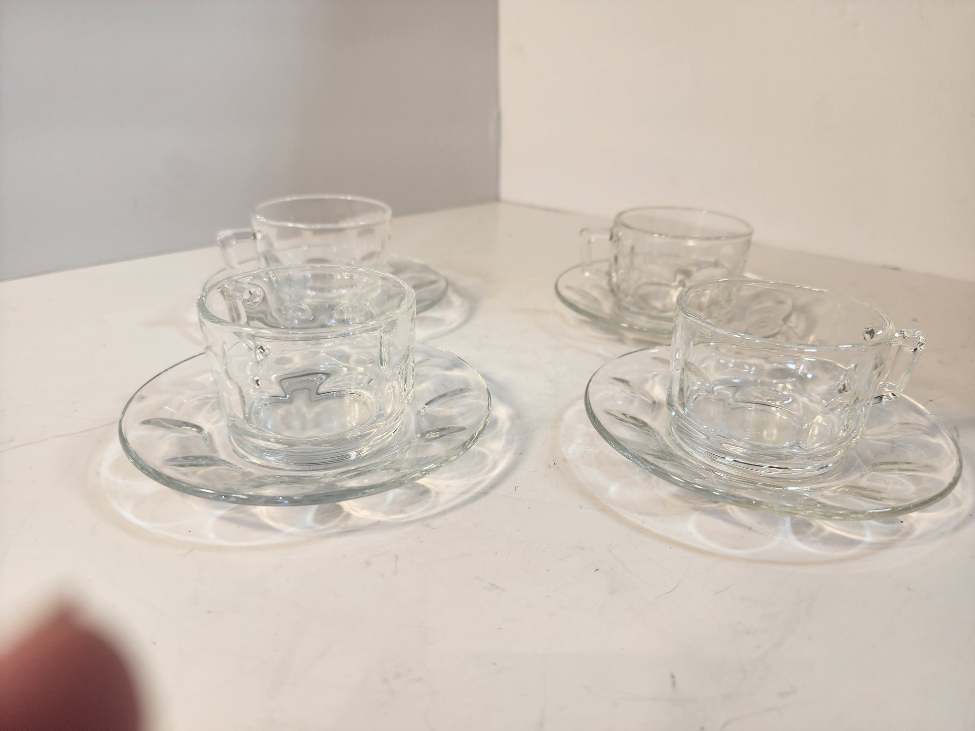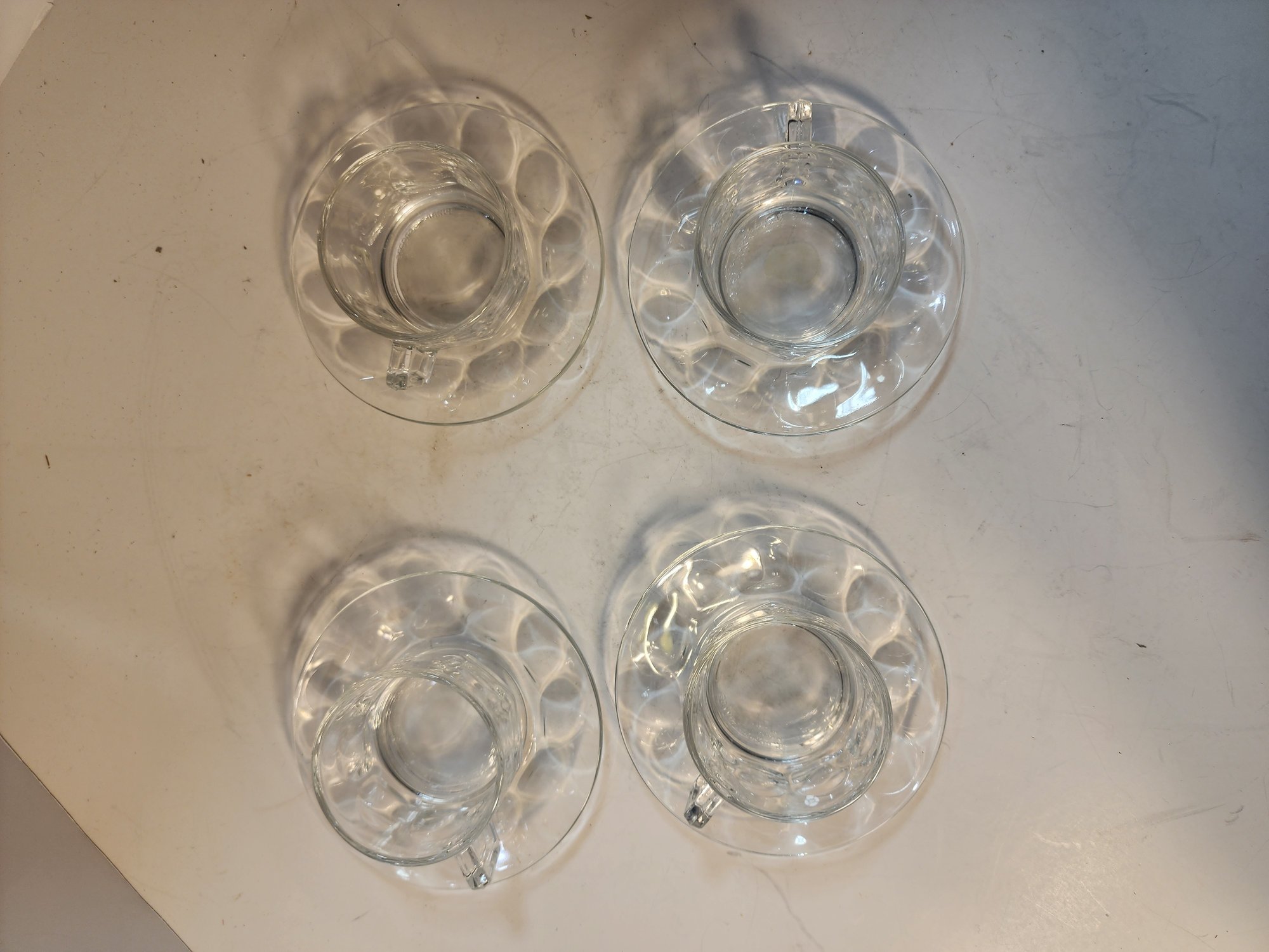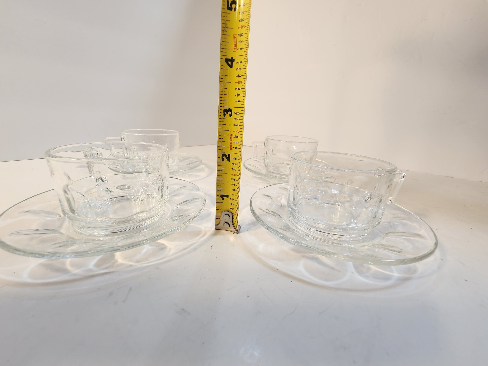 #22 4 Teacup And Saucer Sets Clear Glass From France