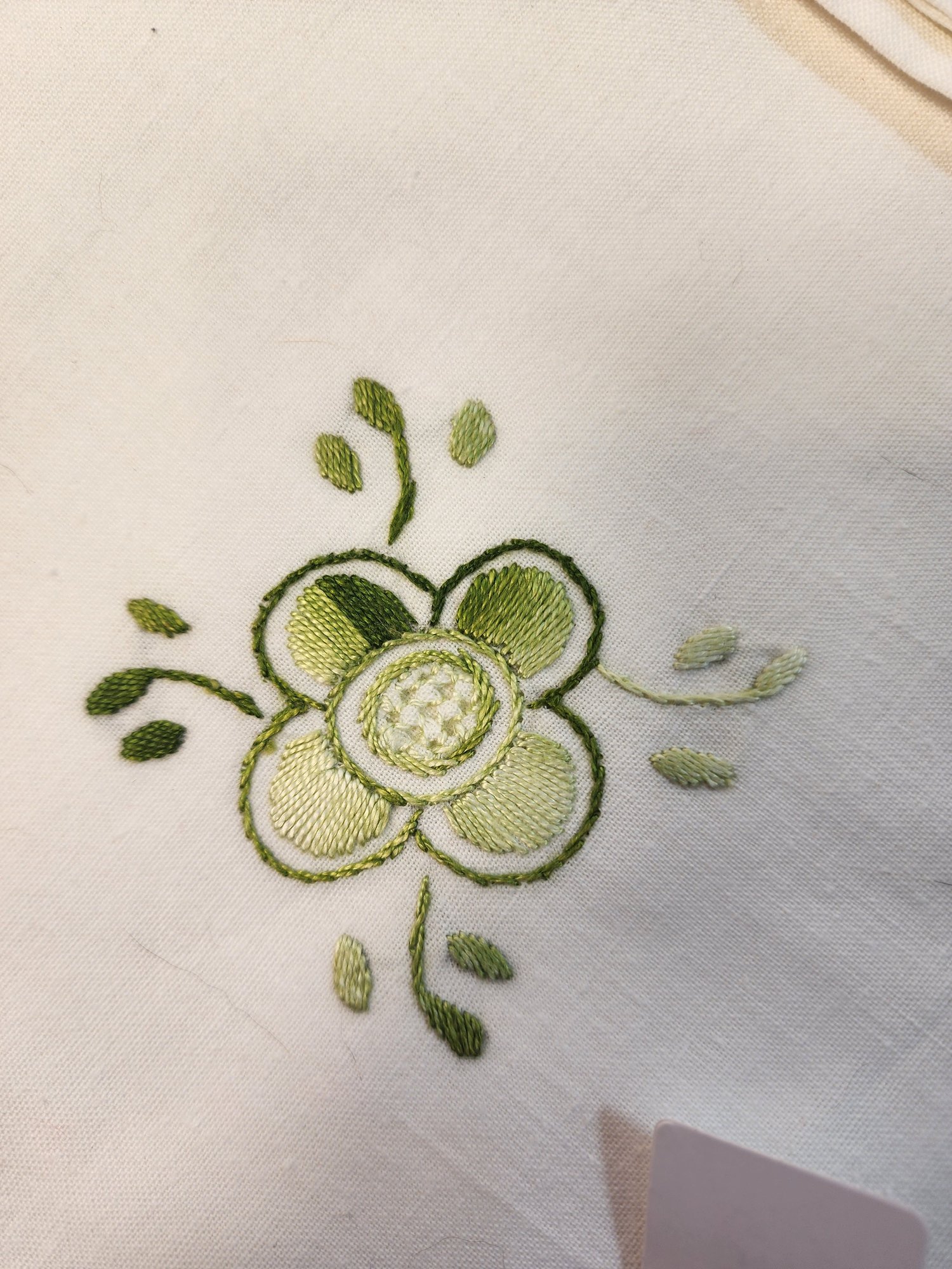 #221 Lot Of 5 Green On Cream Embroidered Napkins
