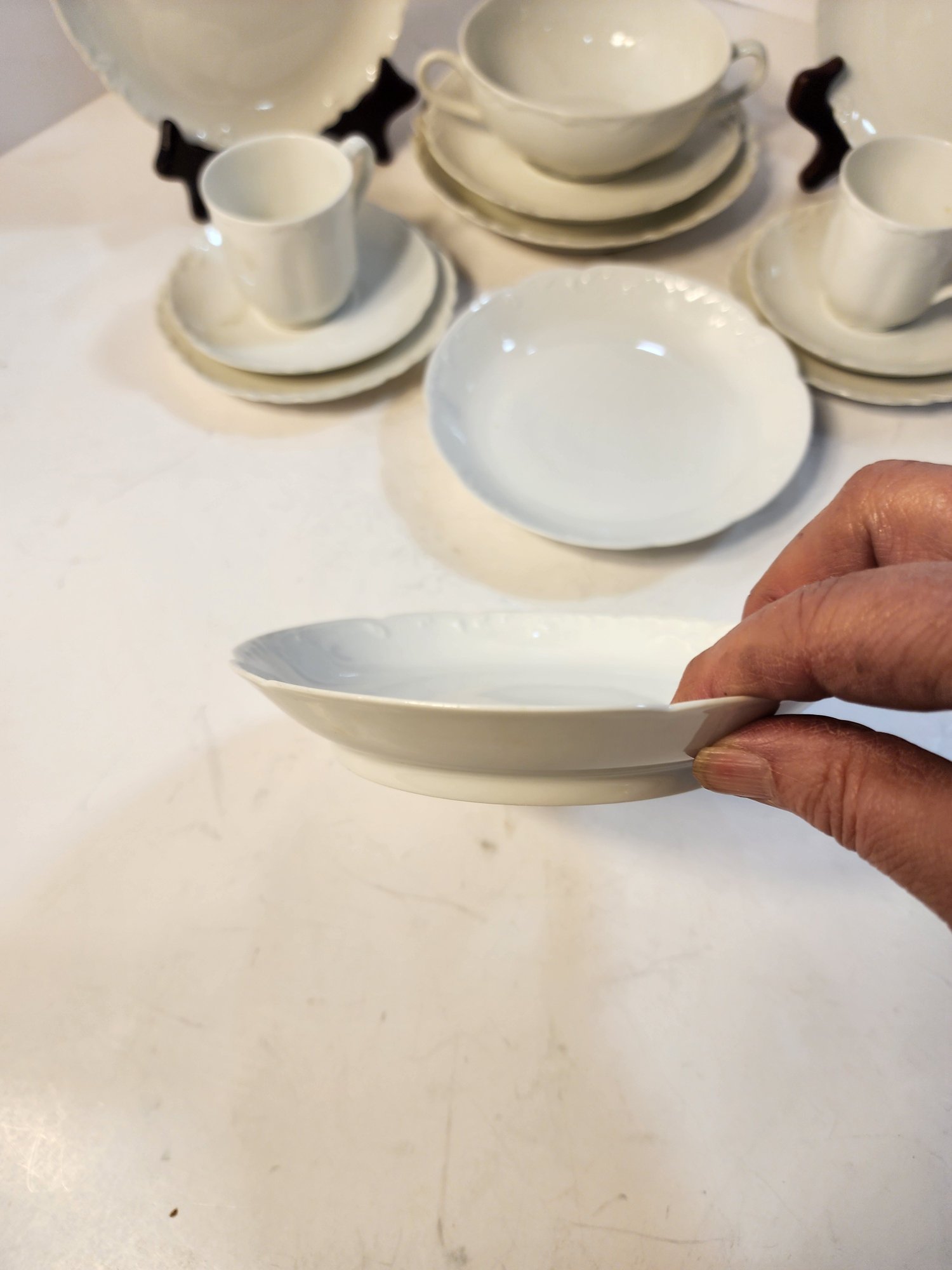 #228 2 Limoges Demitasse Cups And Saucers And Extra Bread Plates