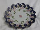 FEATURES HAND PANTED FLORLA SITH A DISTINTIVE COBALT BLUE SCALLOPED RIM WITH GOLD ACCENTS.